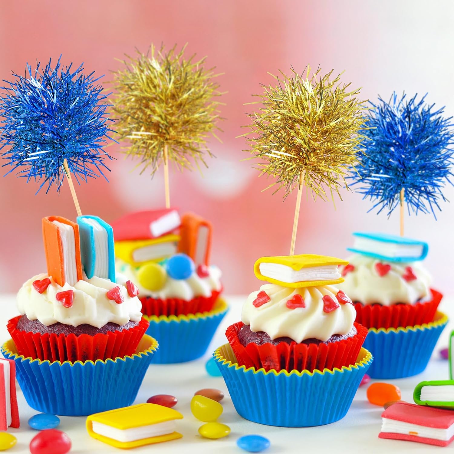 - Large quantity: the package includes 100 pieces of firework tinsel picks, sufficient quantity and various colors to meet your needs on cake decorations