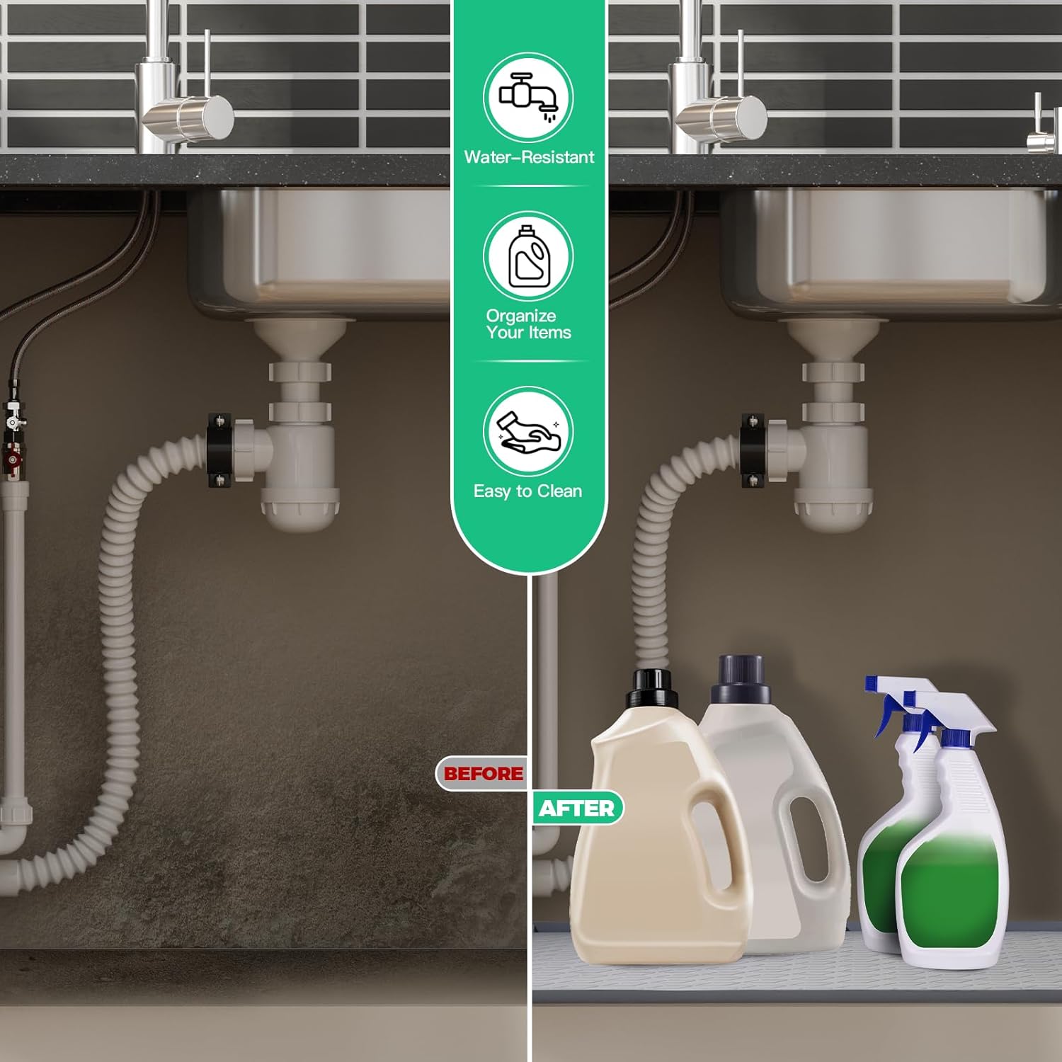 - Compatible Sizes: The TRZZ under sink mat measures 34" x 22" with a 0.6-inch depth to effectively handle water from cabinet leaks; not suitable for cabinets smaller than 34" x 22"