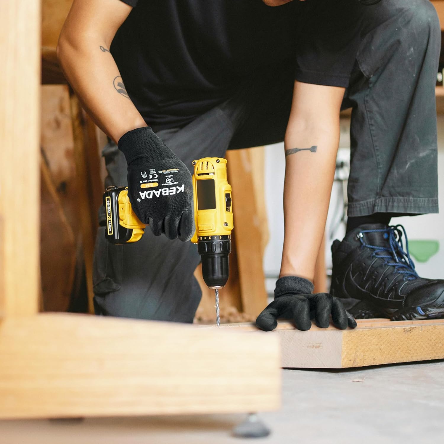 - COMFORTABLE WORK GLOVES: These Kebada mens work gloves are lightweight, flexible, dexterous and comfortable, excellent breathability keeps hands cooler, dryer and more productive, Thin feature enhances dexterity radically, snug fit to all fingers for men and womens general duty outdoor work. These mens work gloves are packed in a value 12 pairs pack, Coated with Grippy PU coating, provide extra grip when grabbing construction materials and tools for outside work.