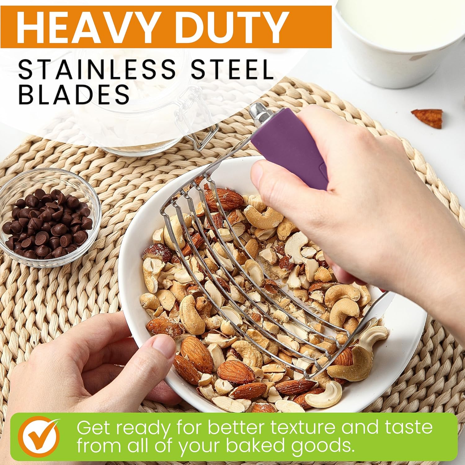 Spring Chef Large Purple Dough Blender For Baking, Heavy Duty Dough Cutter Tool, Stainless Steel Puff Pastry Cutter Tool with Sharp Blades, Dishwasher Safe Pastry Blender for Easy Mixing