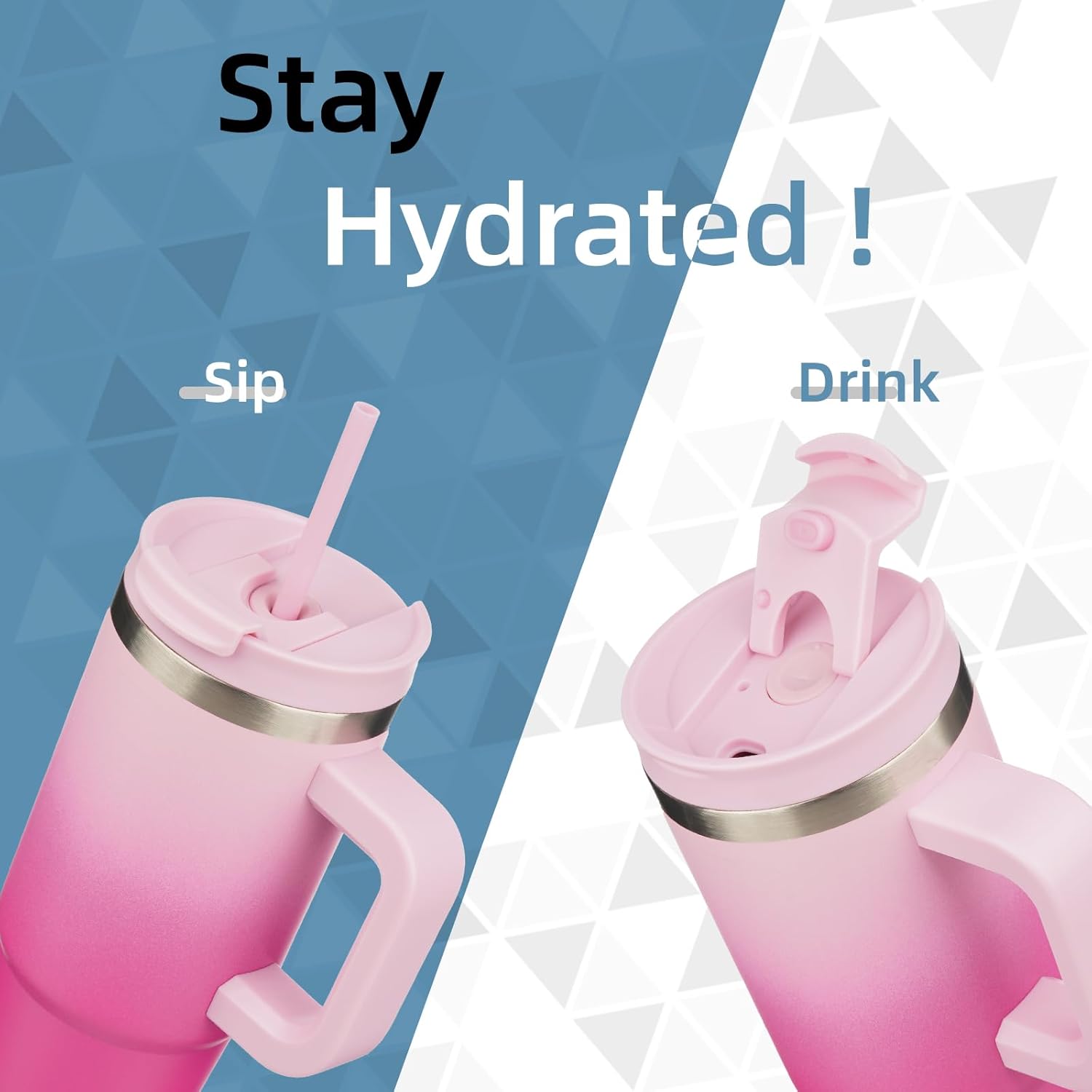 - Tapered shape designed slim-base makes the tumbler easily fit in most cup holders.Comfort and sturdy handle makes it easy to carry anywhere,suitable for short term driving, gym,office,picnics, or daily use at home