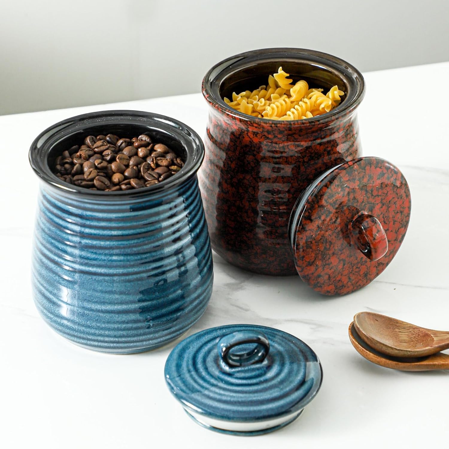 Ceramic Food Storage Jar, Coffee Canister for Countertop with Lids Airtight, Large Flour,Spices,Beans,Rice and Candies Containers for Kitchen and Home,Gift for Halloween,Farmhouse,35 OZ Red