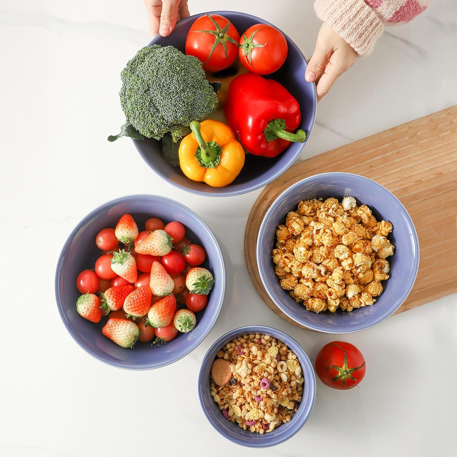 Hasense Porcelain Mixing Bowls Set, Large Serving Dishes for Entertaining, 2.1/1.5/1.0/0.5 Qt Nesting Serving Bowls for Cooking Salad Baking Popcorn, Dishwasher Microwave Safe, Set of 4, Purple