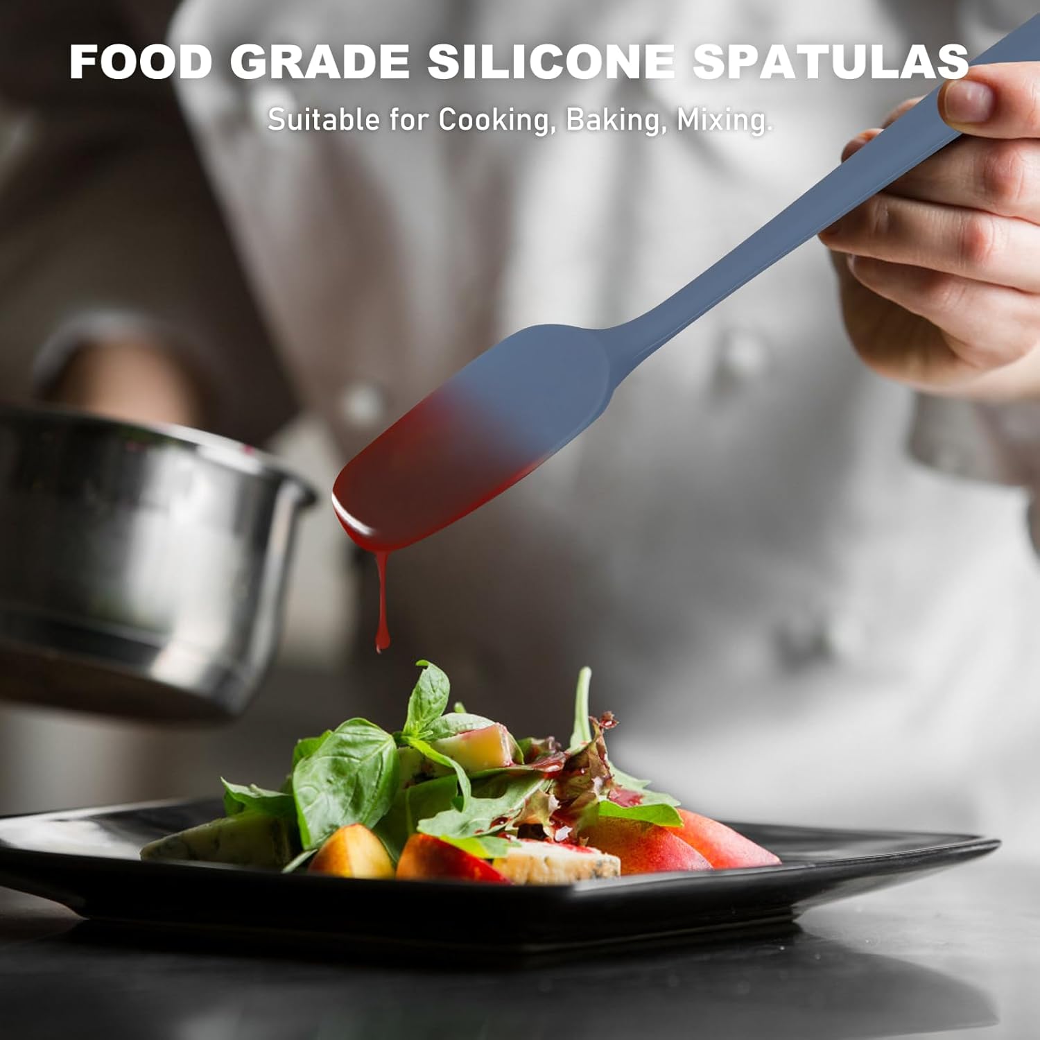 - FOOD GRADE SILICONE SPATULA: This silicone spatula set is suitable for cooking, baking, and mixing. Flip eggs or pancakes, make cakes, scrape butter, etc.