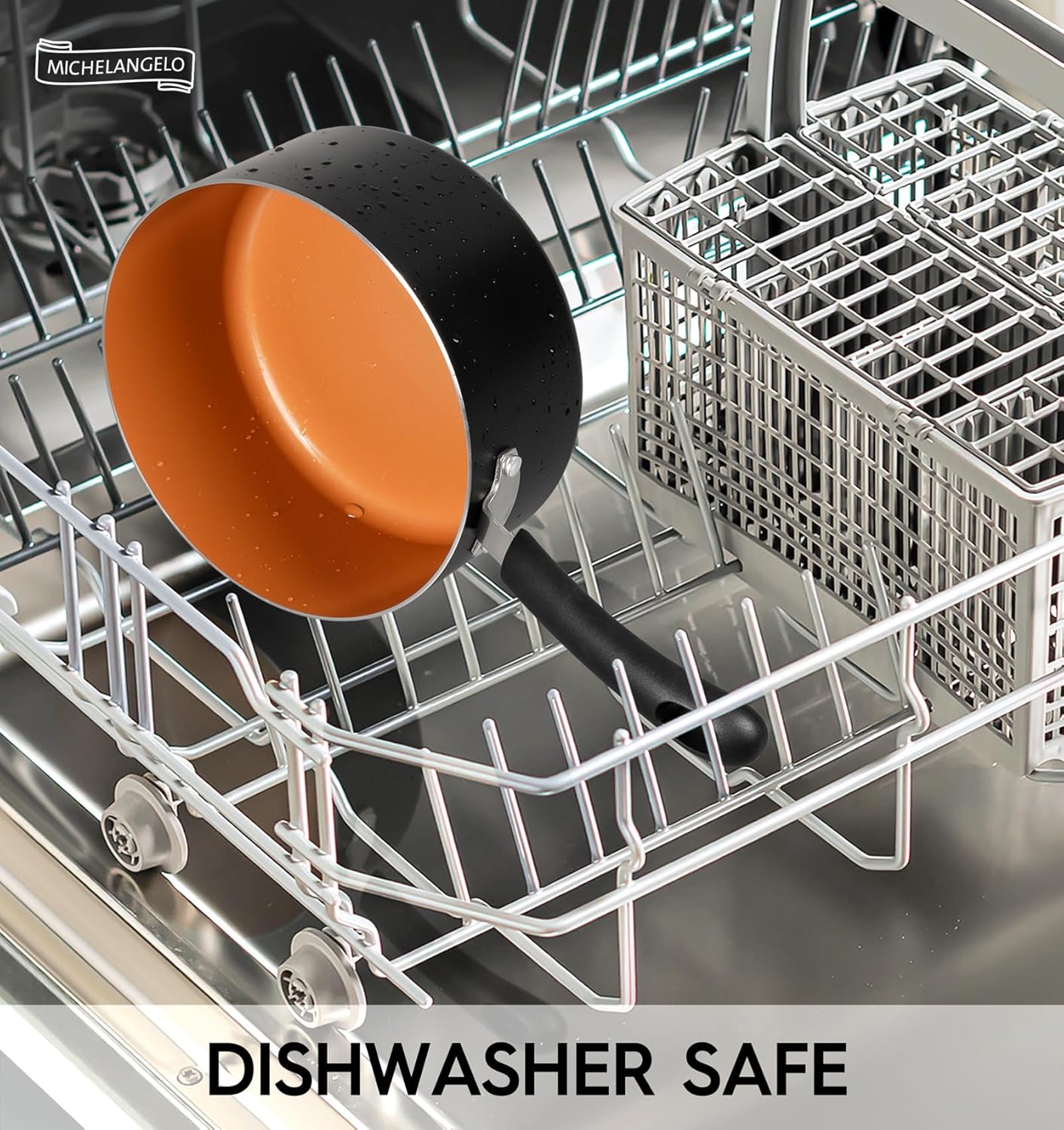 - [FAST & EVEN HEATING] - The cooking pots in our sauce pan set have durable aluminum alloy bases that greatly enhance heating performance. Suitable for all stovetops. Dishwasher safe