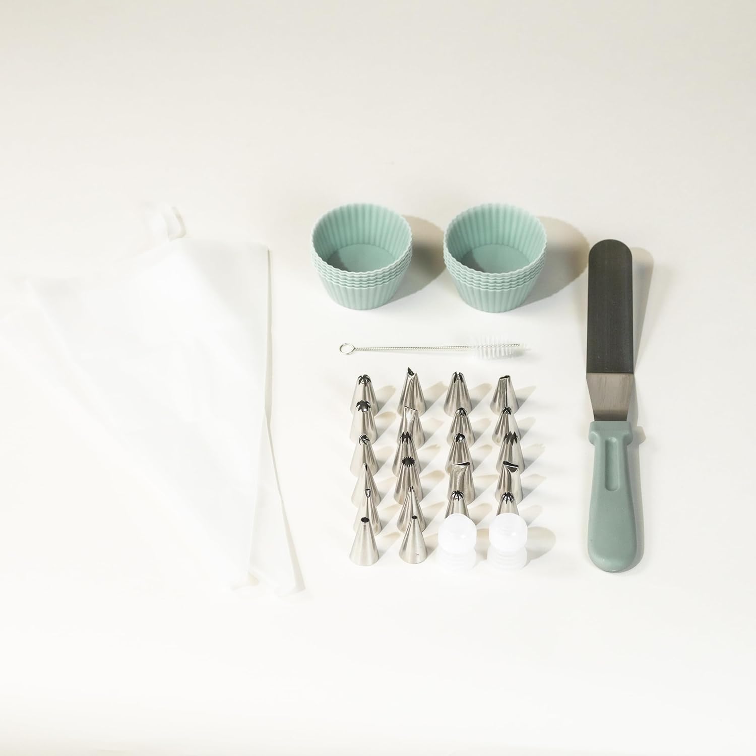 - Includes Mixer, Cookie Paddles, Cake Paddles, Bowl Scraper, 40 Piece Icing Kit, 2 Pack Silicone Cookie Sheet Liners, Dough Hook, Wire Whips, Splash Cover, Lid, & Metal Whip Driver