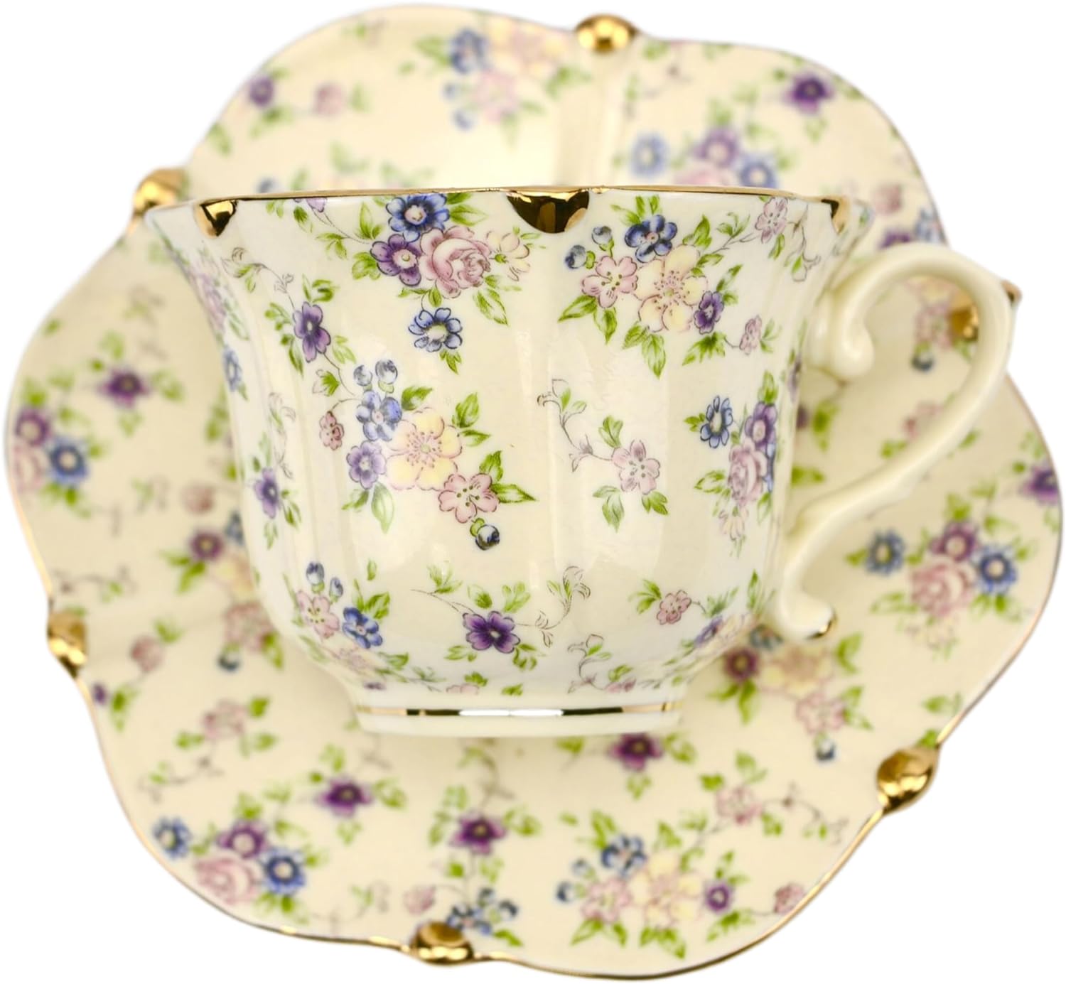 - 8.5 Ounce Bone China Porcelain Tea Cup and Saucer, Assorted colors, Floral Pattern, Set of 1
