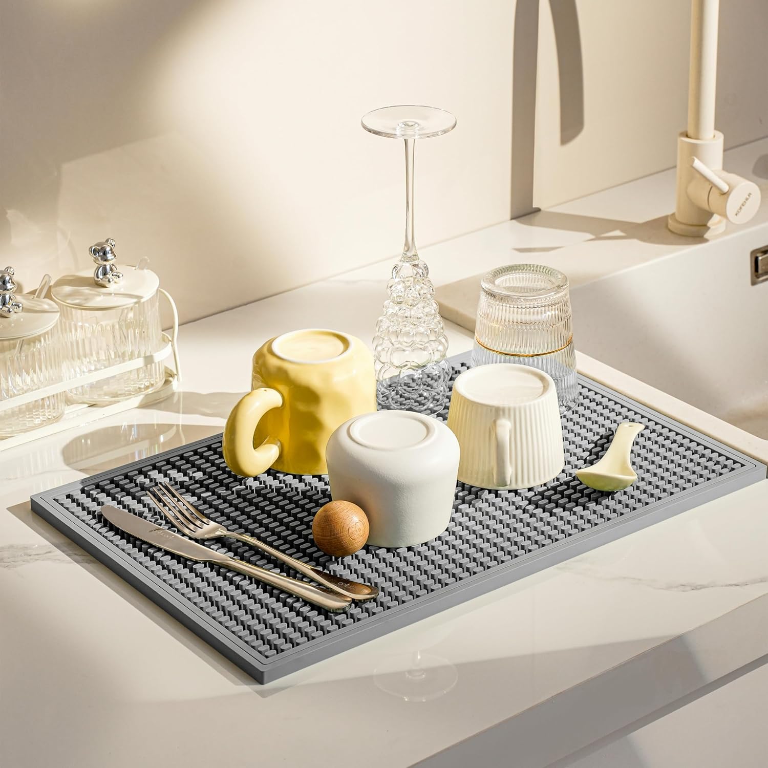 - HIGH QUALITY MATERIAL: Our gray bar mat is made from premium quality materials that have been carefully selected to ensure superior durability and long-lasting performance. Whether it's in a busy bar environment or a cozy home coffee corner, this mat is built to last.