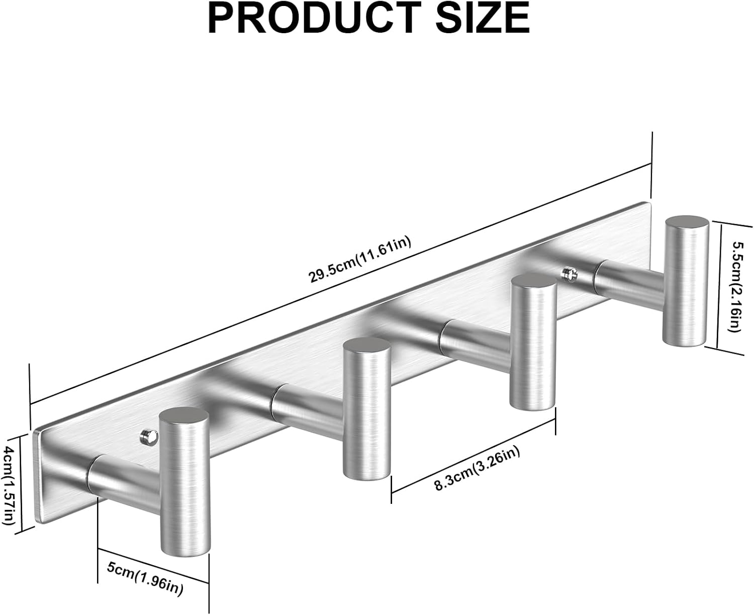 - VERSATILE USE:This Silvery Row Hook Coat Rack with 4 Hooks is good for various locations, including bathrooms, kitchens, living rooms, entrances, and offices. Use it to hang towels, kitchenware, coats, hats, jackets, wallets, keys, and more, adding functionality and organization to your space