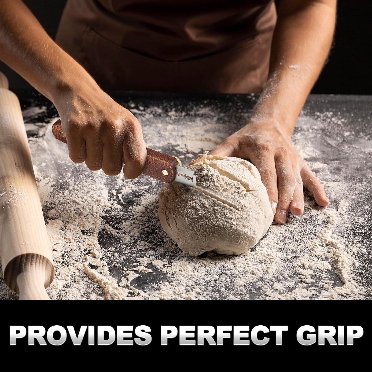 - 【UNIQUE DESIGN FOR THUMBS】Patent-Pending!The customized brass screws not only add sophistication to the bread scoring tool,but also provide a comfortable grip and stability with your thumb pressed against the surface of the screws when carving bread