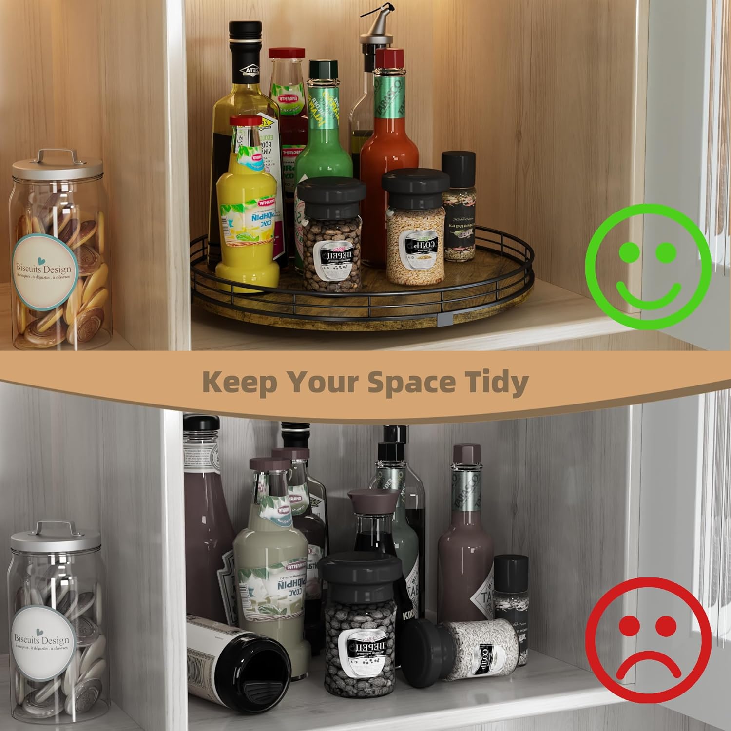- Wide Application - The lazy susan organizer adopts handmade craftsmanship. Its MDF material is strong and long-lasting, not easy to wear and has no odor. The surface has exquisite texture, creating a unique rustic style