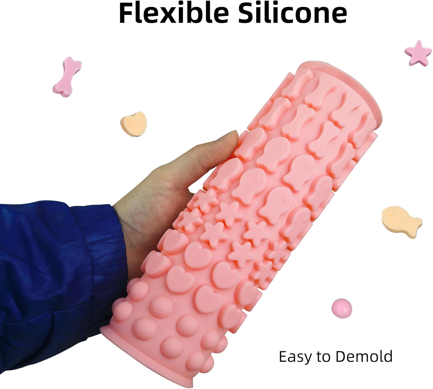 Dog Treat Molds 130 Cavity Mini Silicone Molds Star Heart Bone Fish Roud Shape for Baking Biscuits, Cookie, Candy, Chocolate, Gummy, Cookie