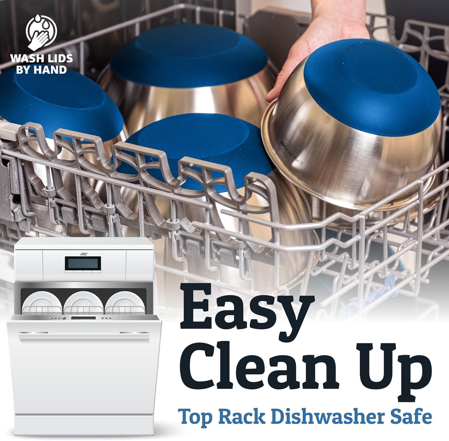 - Comprehensive Size Variety: Elevate your culinary skills with our complete set of 5 stainless steel mixing bowls with lids set, ranging in size from 1.5 to 5 quarts. Whatever the task you'll find the perfect size for every task.