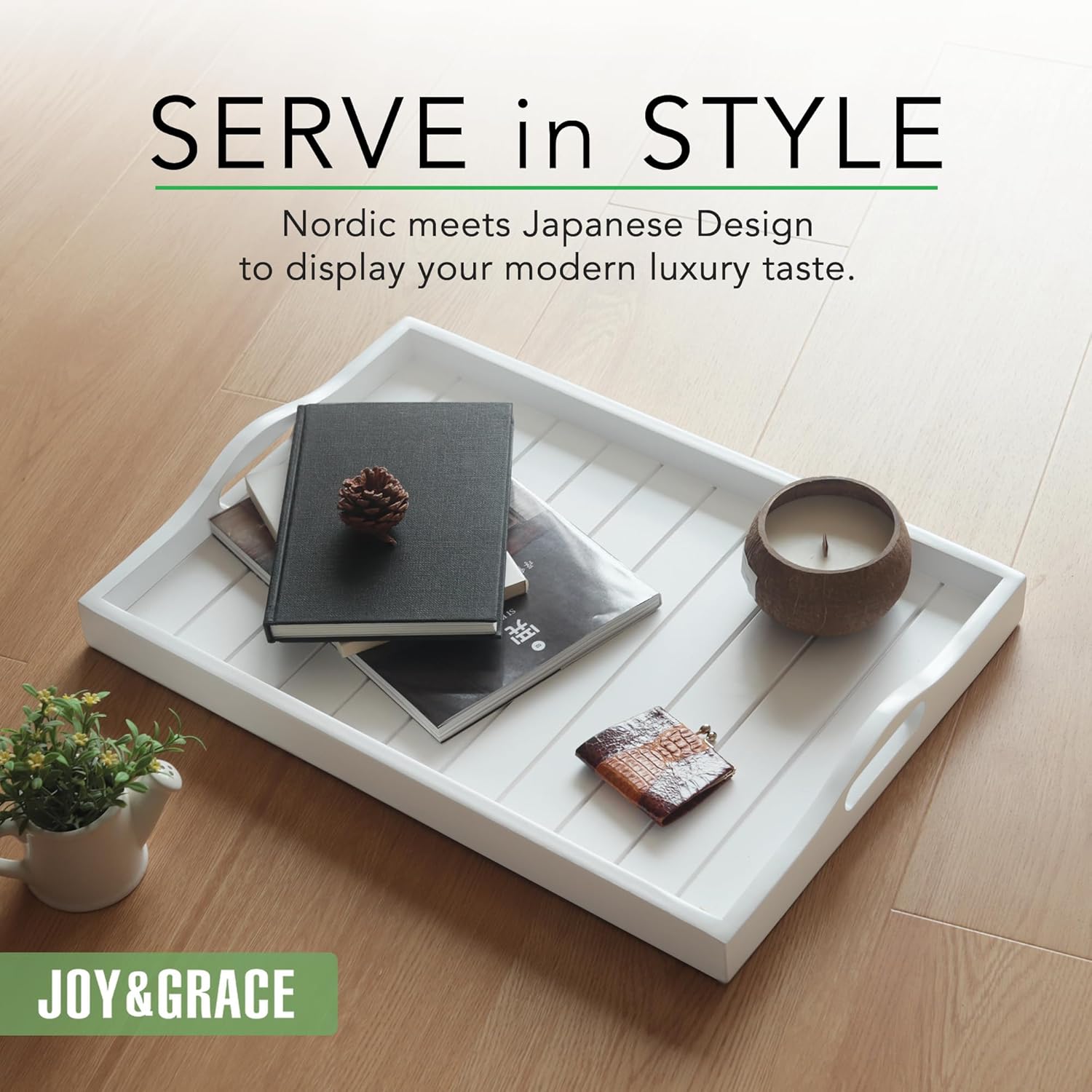 - White Wooden Tray: Made from quality rubberwood, this wooden serving tray highlights its natural texture while providing durability; No MDF or synthetic materials used, it’s a stylish choice for your home