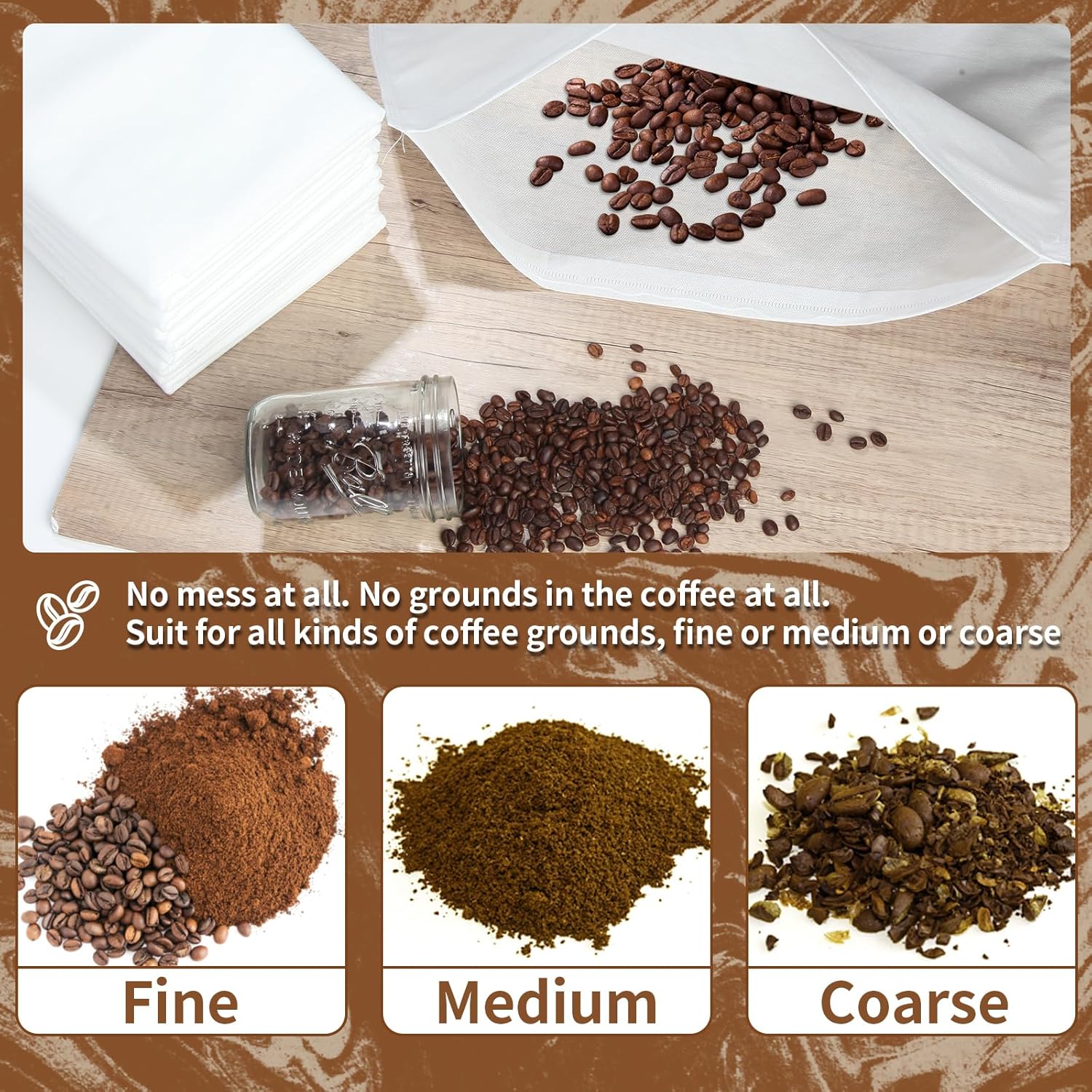 - THE STRONGEST COFFEE FILTER BAG: Made of thicker non-woven material, the cold brew bags is professionally tested before sale and will not tear at the reinforced edges even when wet; at the same time, it easily captures all the tiny impurities, oils and bitterness in the coffee without causing any changes in the extraction or taste of the final product, making the coffee taste better