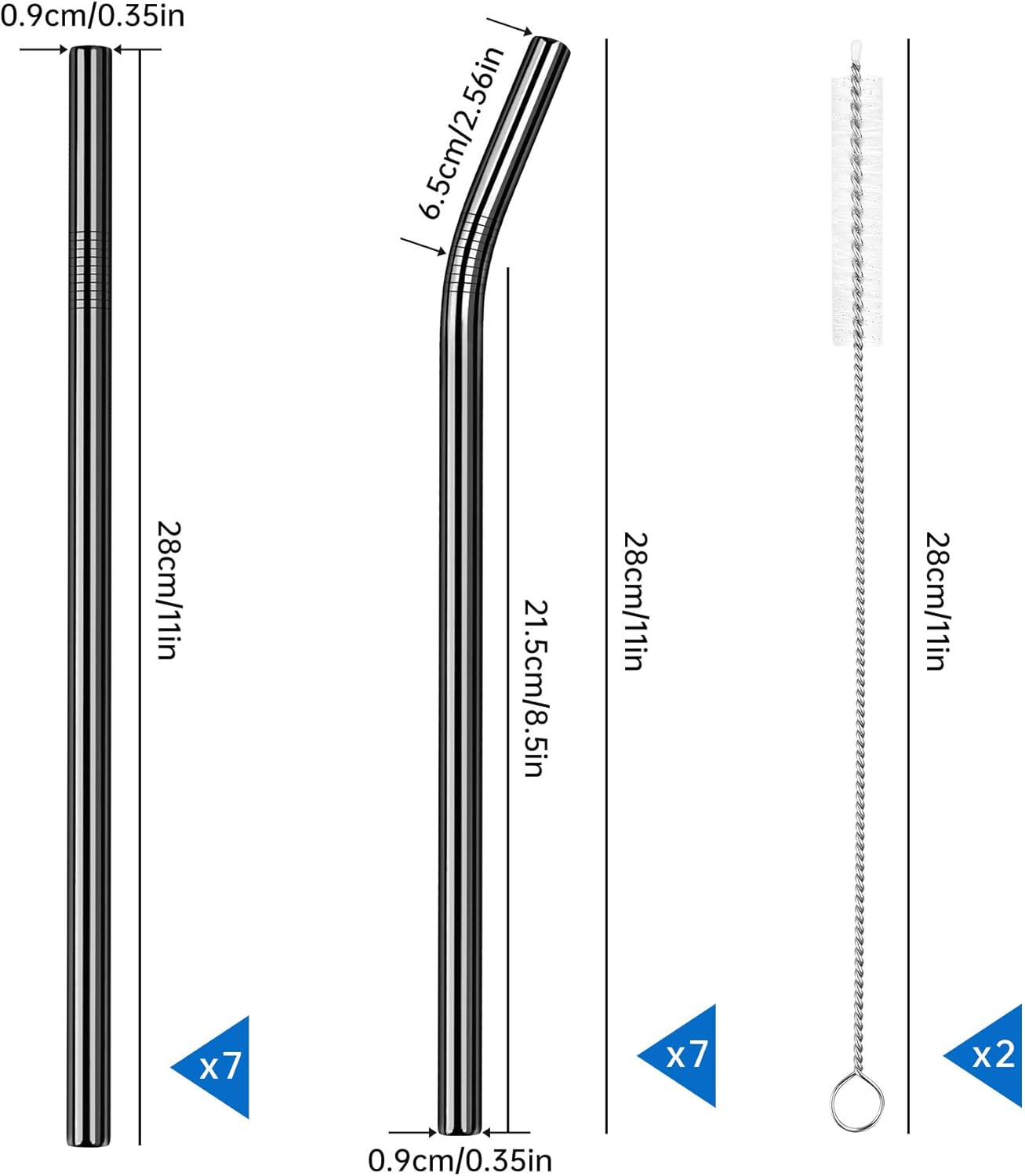 - 🍹 Exceptional Value Set - This fantastic package includes 7 straight straws (11" x 0.35"), 7 curved straws (11" x 0.35"), complemented by 2 additional extra-long cleaning brushes. Offering superior convenience and practicality, this set is a must-have for any household.