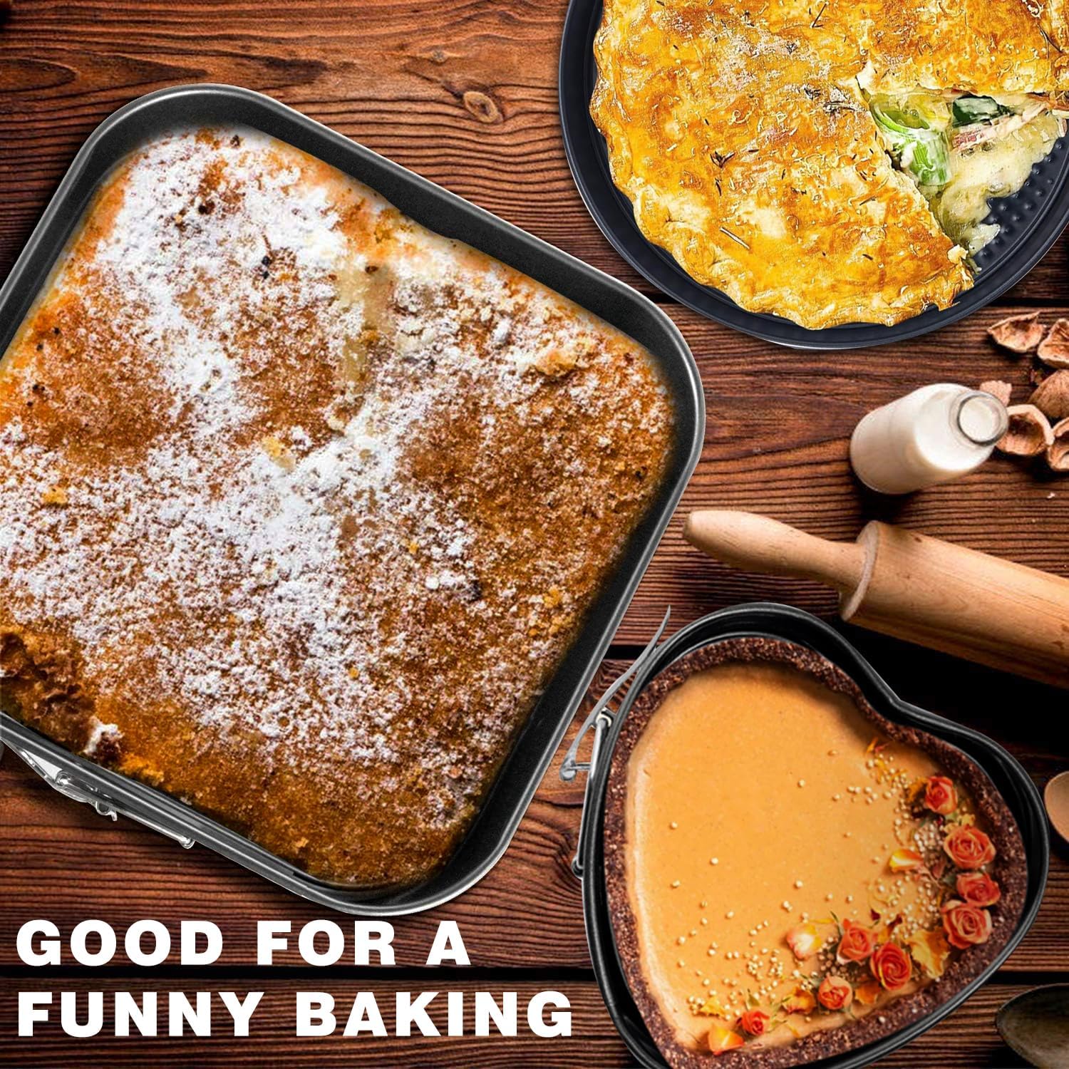 - 【Non-stick Coating】The non-stick surface of this bakeware set guarantees easy release of baked goods and effortless cleaning, saving you time and effort in the kitchen.