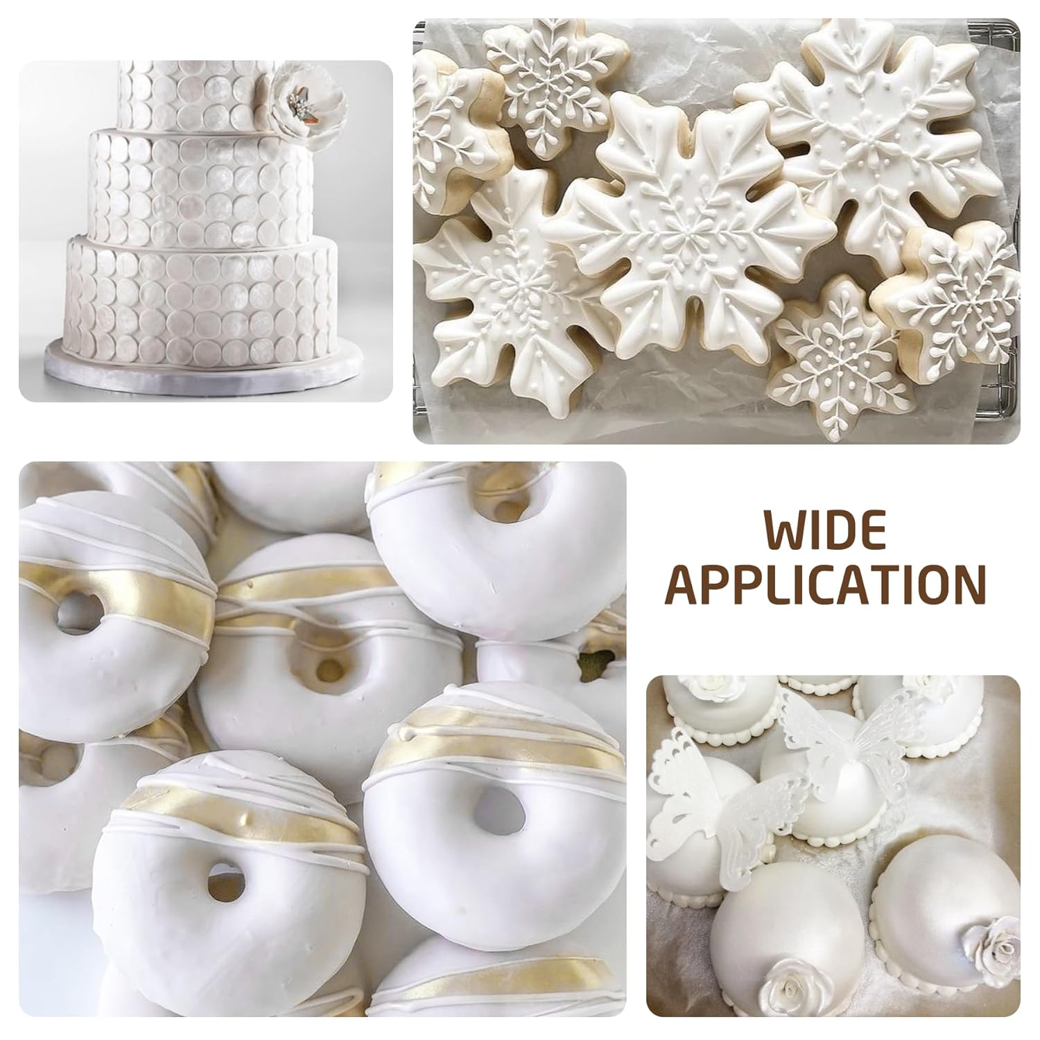 - SAFE & PREMIUM - Crafted with premium food-grade ingredients, this edible shimmer cake paint is not only safe but also free from fat, GMOs, gluten, dairy, and nuts. Remarkably, it is sugar-free and flavorless, allowing you to achieve vibrant metallic effects across a wide range of applications without compromising taste or texture.