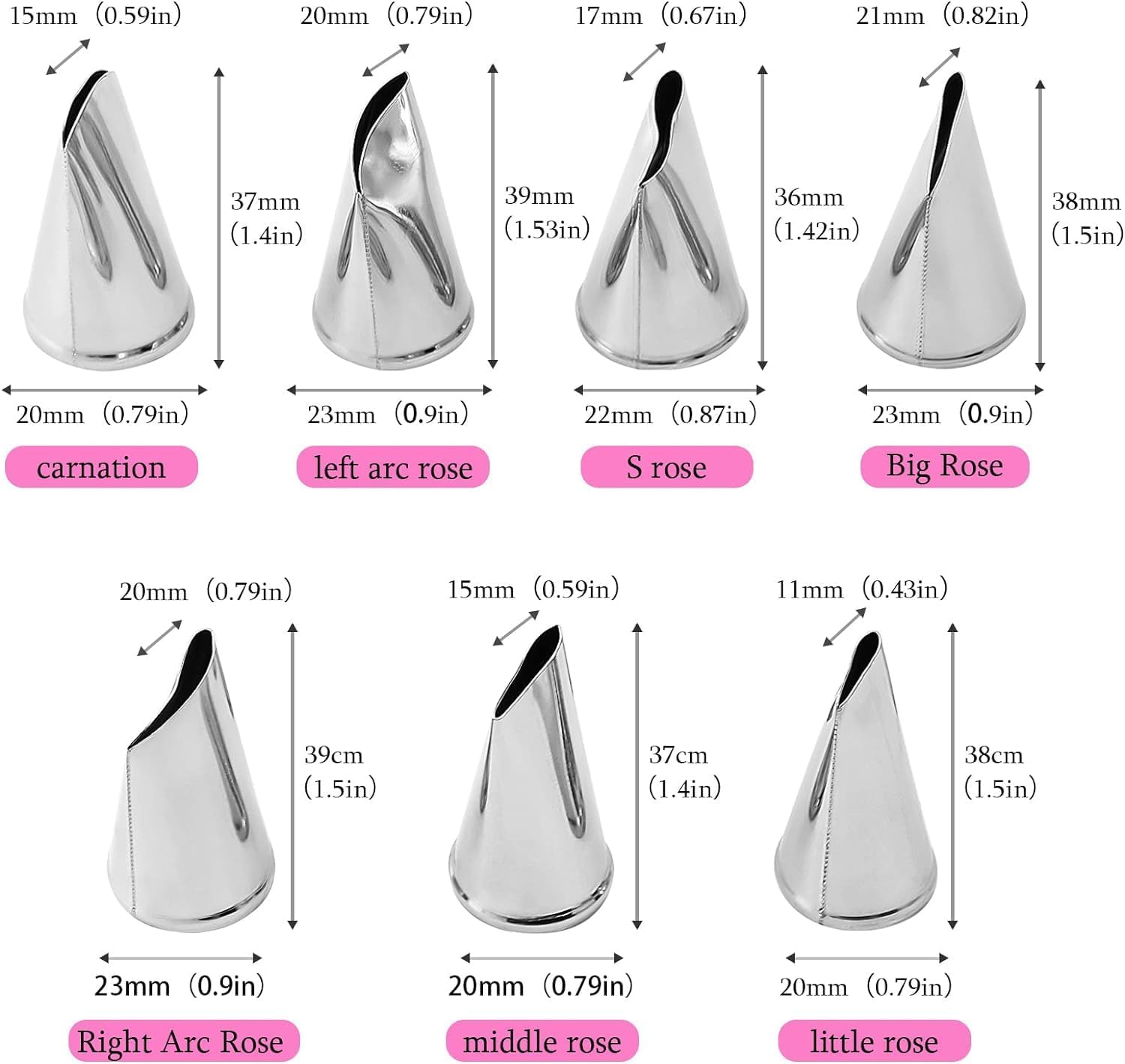 - 【Stainless Steel Rose Petal Piping Nozzle】These cake decorating tips are made of durable stainless steel, made of high quality durable and food grade 430 stainless steel, seamless welding process. As a professional desserts cook, it will be your effective assistant.