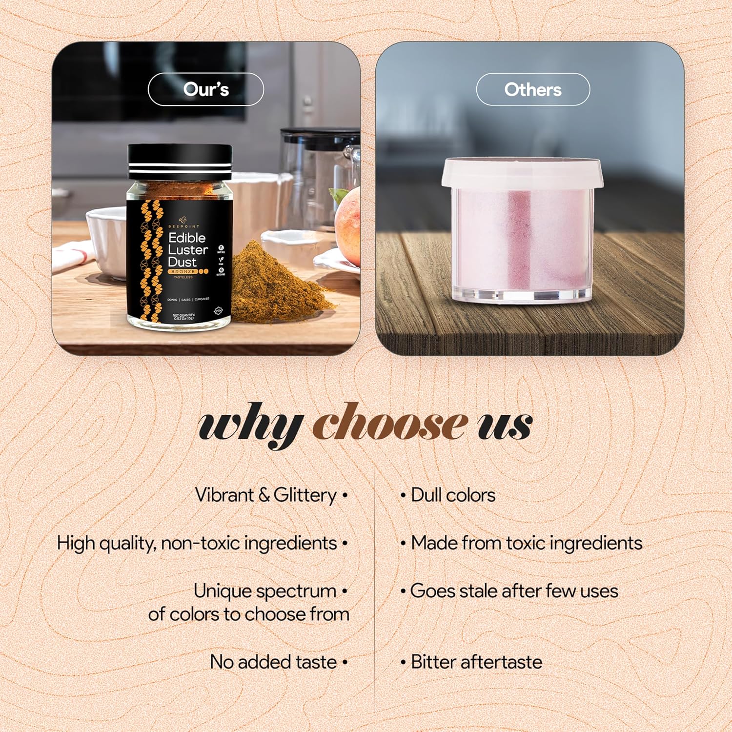 BeePoint Bronze Edible Luster Dust 15g - Food Grade, Vibrant Color Shimmer Powdered Dust for Drinks, Cocktails, Cake Decorating, Baking, Chocolates, Candy, Sweets, & Cookies - Vegan & Gluten Free