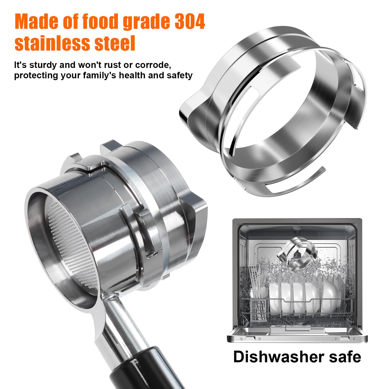 - 【Food-Grade 304 Stainless Steel Material】This dosing funnel is made out of food grade 304 stainless steel,will not rust or corrode. it is safe for your family’s health. you can put it in the dishwasher without worry or clean it with a brush or sponge. This 54 mm dosing ring is durable and will add interest to your coffee life.
