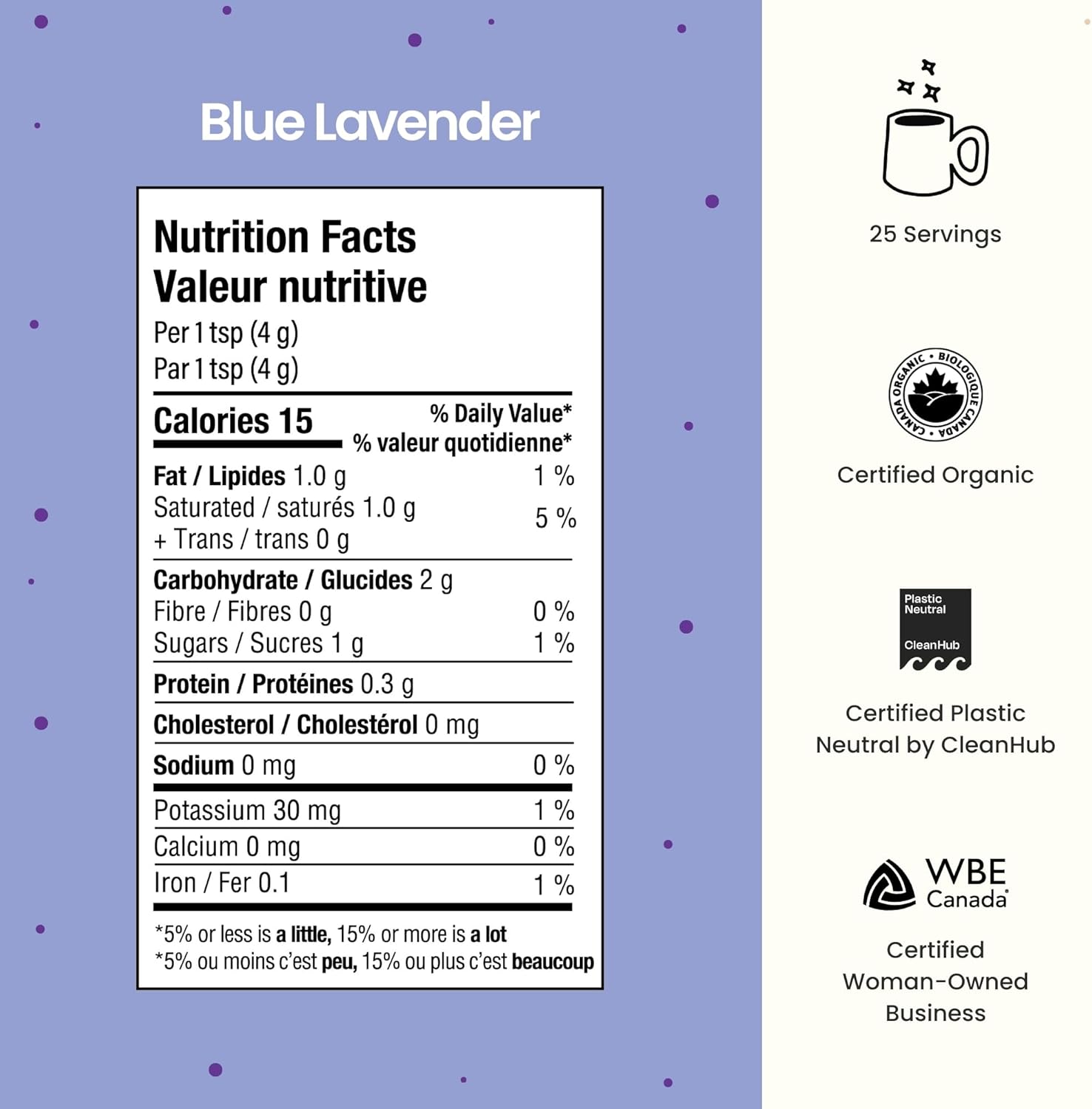 - PLANT BASED LATTE POWDER:Balanced, calming, and smooth, the Blue Lavendar dreamy blue hue was formulated to soothe restlessness and help you unwind before bed. Lavender has been used for centuries to calm the mind and improve quality of sleep. Sip back and get your ZZZs on. (30 servings)