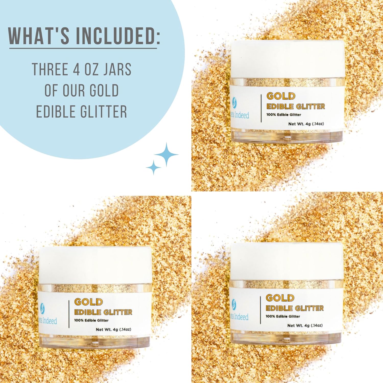 Sweets Indeed Edible Glitter, Perfect for Drinks, Cocktails, Beverages & Cake Decorating, Dessert Cake Topper, 4 grams, 3 Pack (Christmas) (Christmas) (Gold)