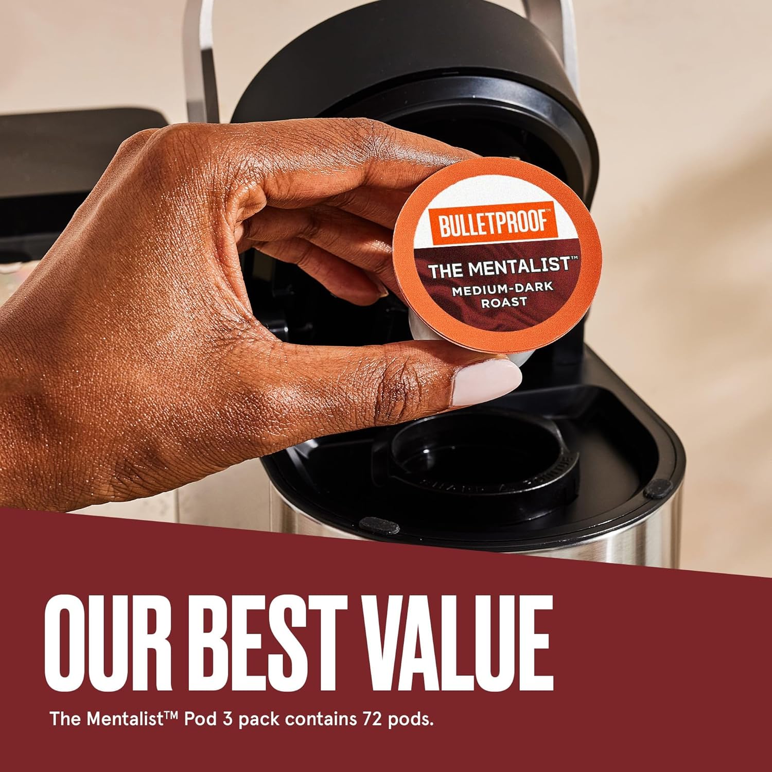 Bulletproof The Mentalist Medium-Dark Roast Single-Serve Pods, 72 Count, 100% Arabica Coffee, Clean Coffee Tested for Toxins, Packaging May Vary