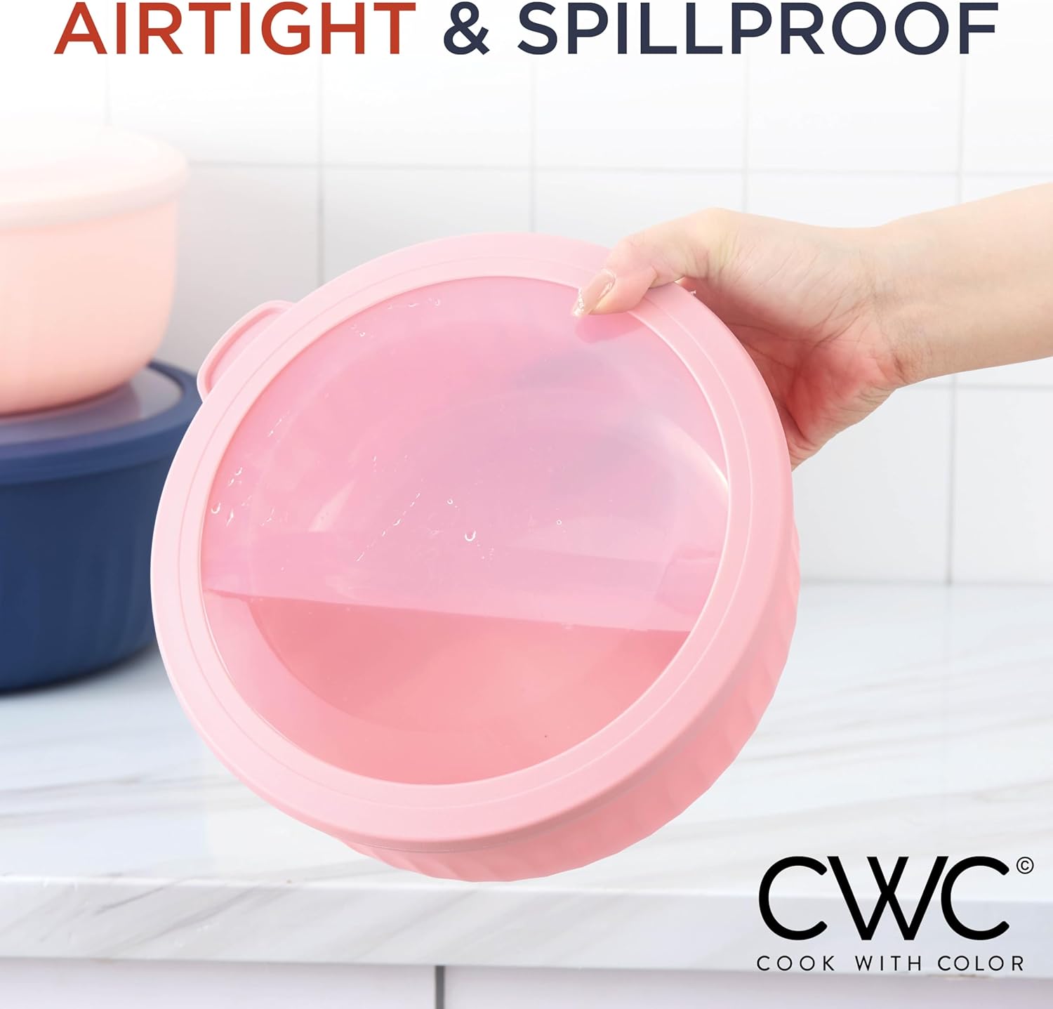 - Nesting Bowls and Sturdy Lids for Easy Stacking - Our ombre colored bowl set nests for easy storage and convenience, a functional set that saves you space. The strong lids allow for staking in the fridge and freezer, and the clear top allows for easy visibility.
