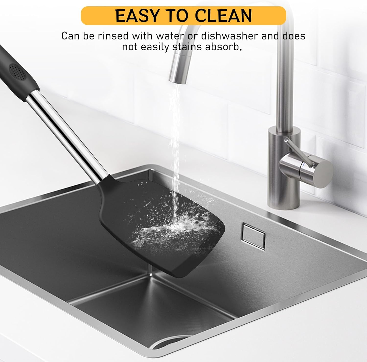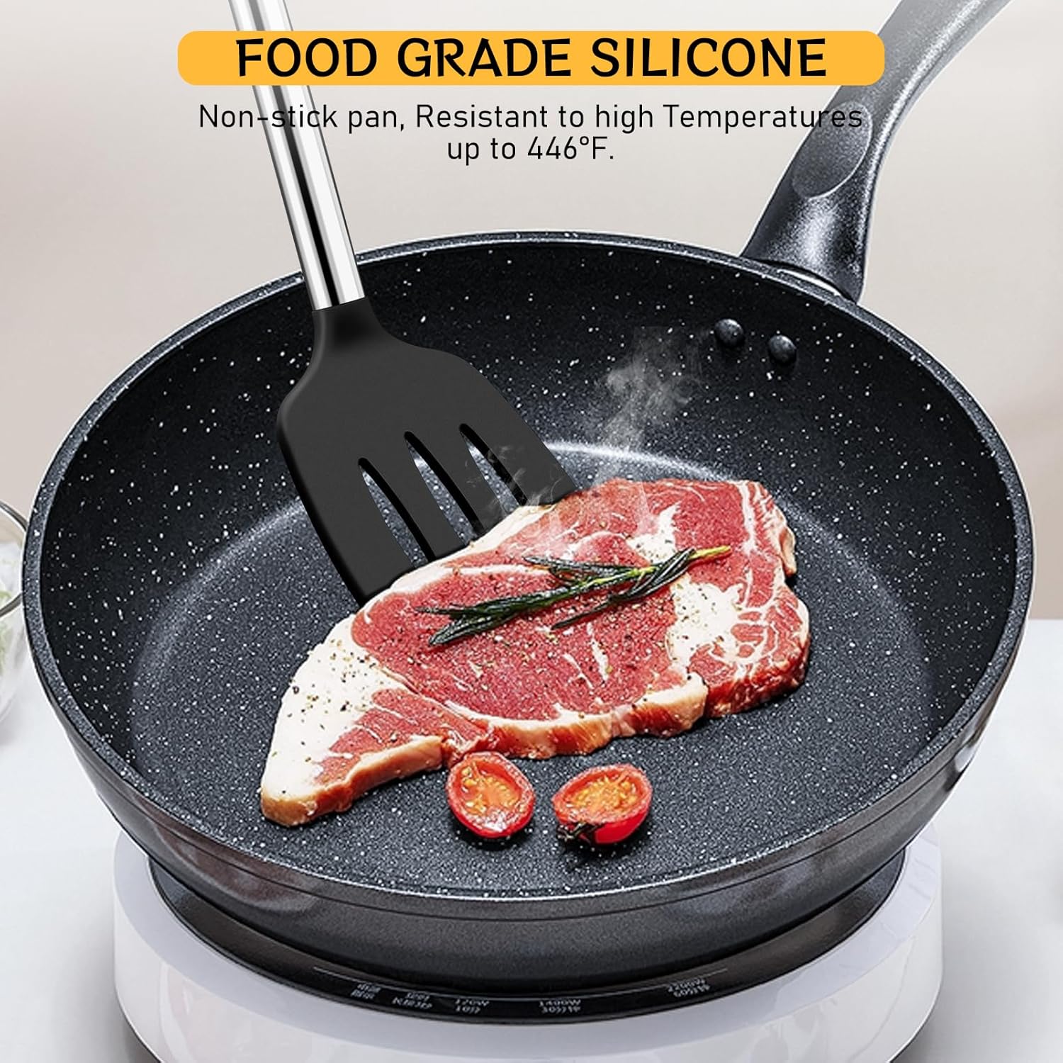 - BALANCED AND COMFORTABLE HANDLE: The spatula has a thickened silicone-coated handle to ensure a good grip in your hand, and the Ergonomic tilt design makes stir-frying more labor-saving.
