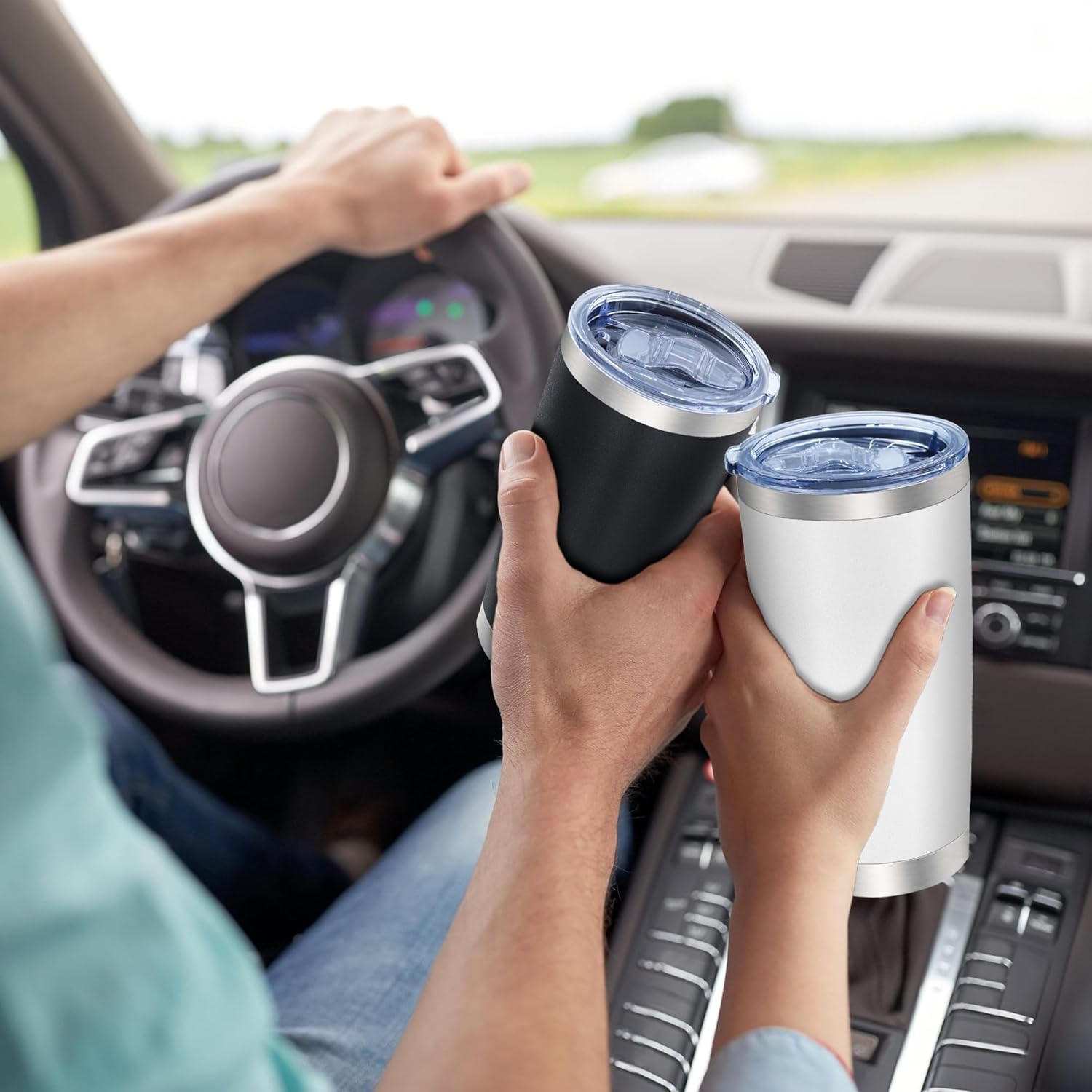 - 【 DOUBLE-WALL VACUUM TUMBLERS 】- Our 20oz tumbler mugs are made of Food Grade 304 18/8 Stainless Steel. The tumblers are with Double-Walled vacuum insulation design, which can keep your on-the-go beverages hot for 3+ hours and cold for 9+ hours. And our tumblers can fit most of the car cup holders. Enjoy your drink for a long time!