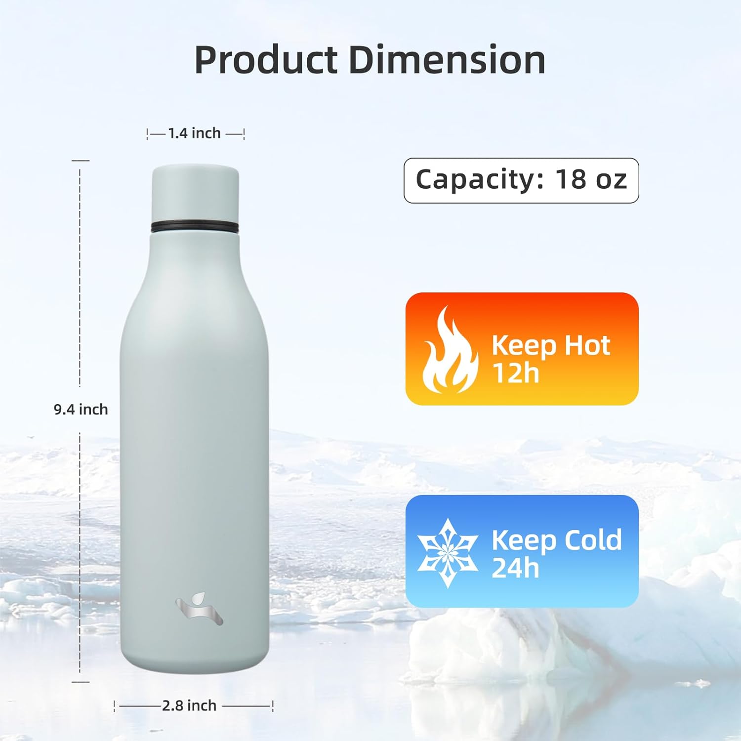 - Made from food-grade 18/8 stainless steel, the BPA-free bottle ensures no metal taste. Double wall insulation keeps beverages cold for 24 hours and hot for 12 hours, making it ideal for any activity