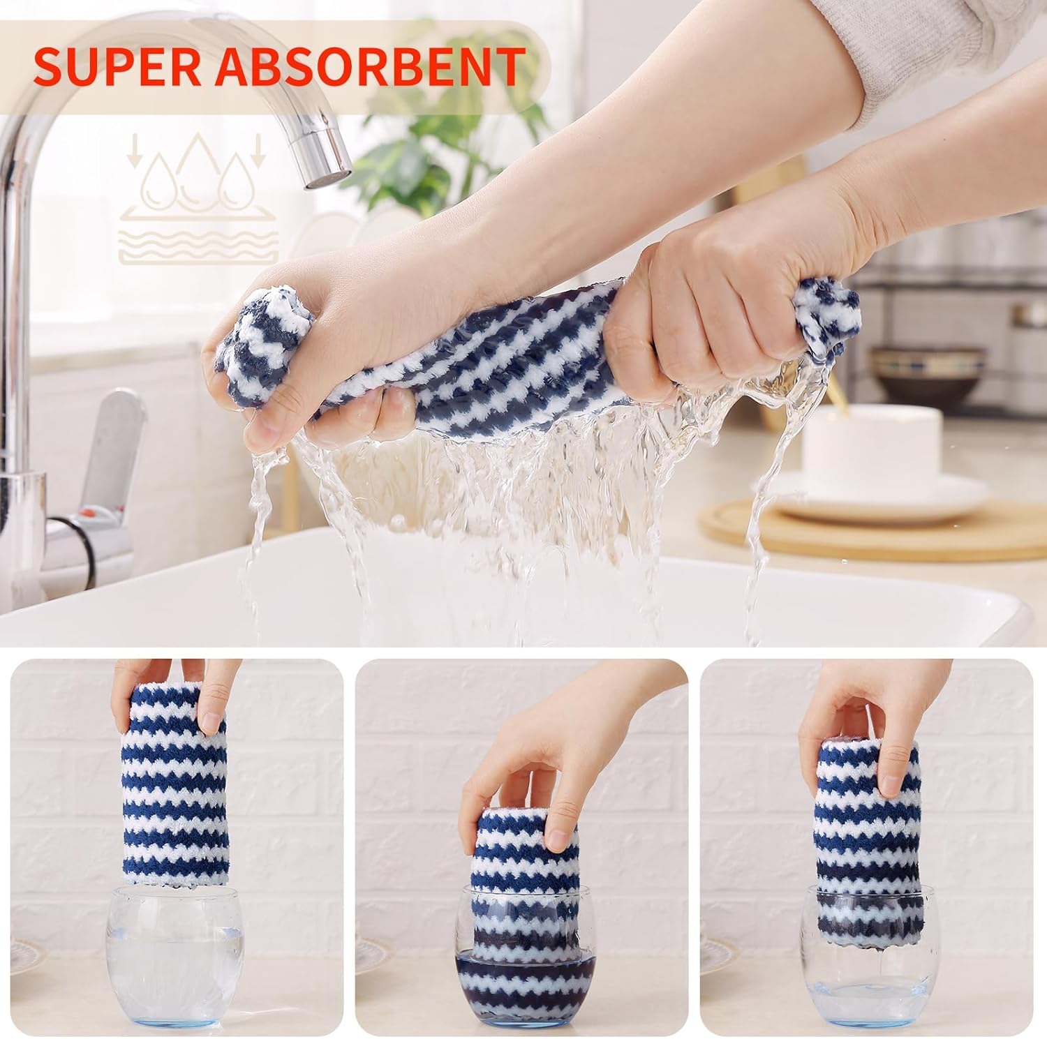 Homaxy 24 Pack Kitchen Dish Cloths, Ultra Soft and Absorbent Dish Towels, Reusable Fast Drying Microfiber Cleaning Cloth, Coral Velvet Wave Design No-lint, 10 x 10 inches, Navy Blue