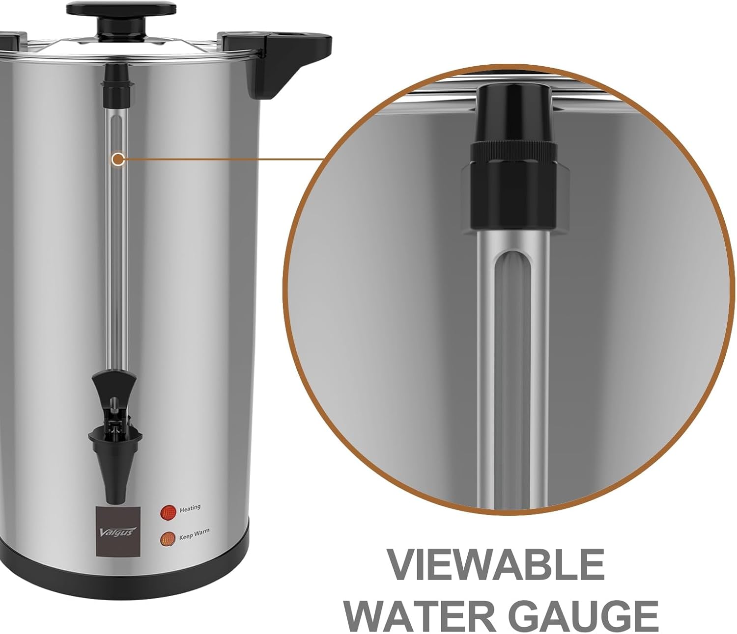 - EASY TO FILL: The large coffee maker with water mark is designed in the urn. The exterior is designed with a coffee-grade viewing window so you know when to refill.