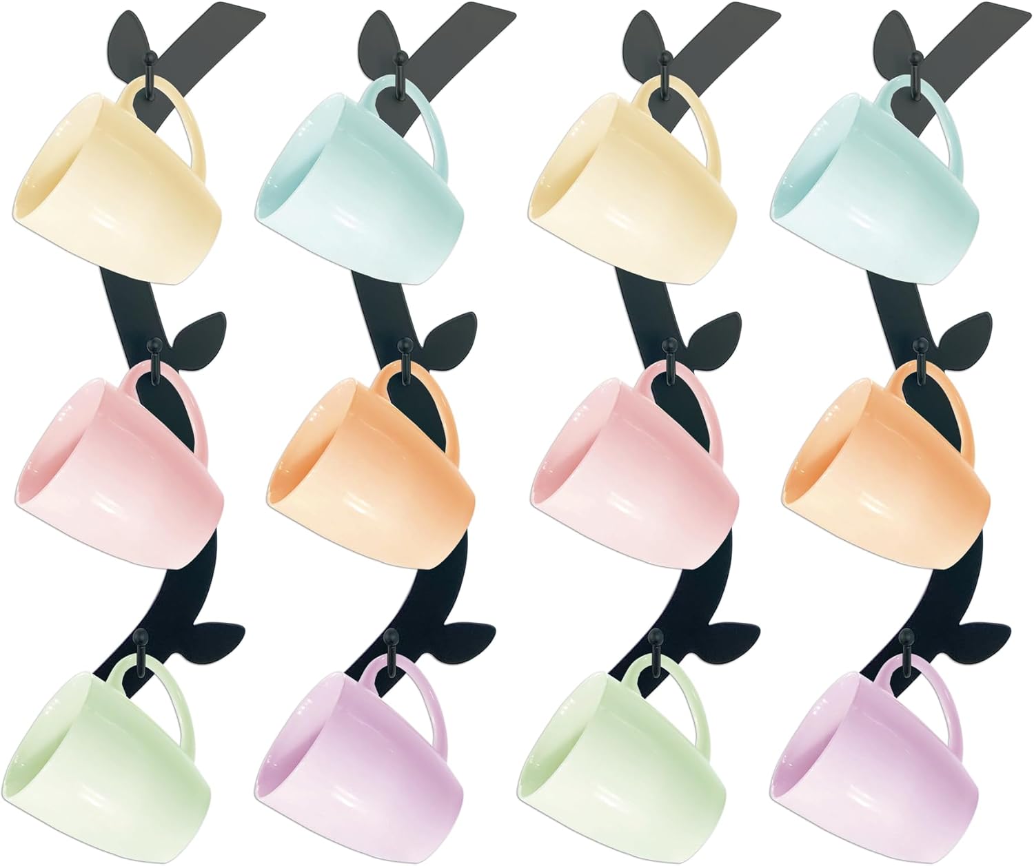 - Beautiful and Stylish look: This coffee mug holder is designed in curved and coffee leaf shapes,have a stylish and modern design. It not only helps keep your mugs handy but also adds a stylish touch to your kitchen or office wall decor.