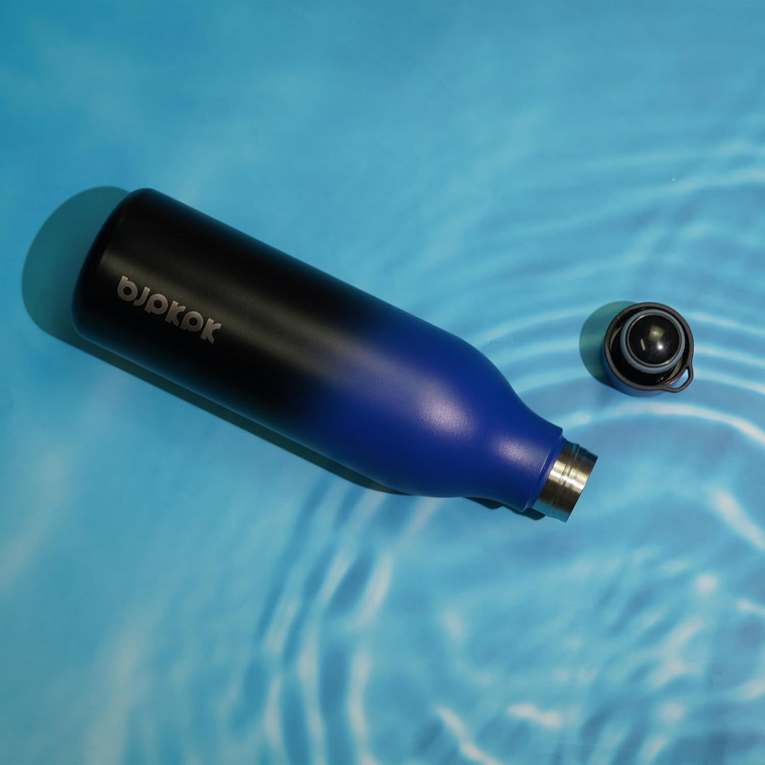 BJPKPK Insulated Water Bottles, 25 oz Stainless Steel Metal Water Bottle with Strap, BPA Free Leak Proof Thermos, Mugs, Flasks, Reusable Water Bottle for Sports & Travel, Blue Black