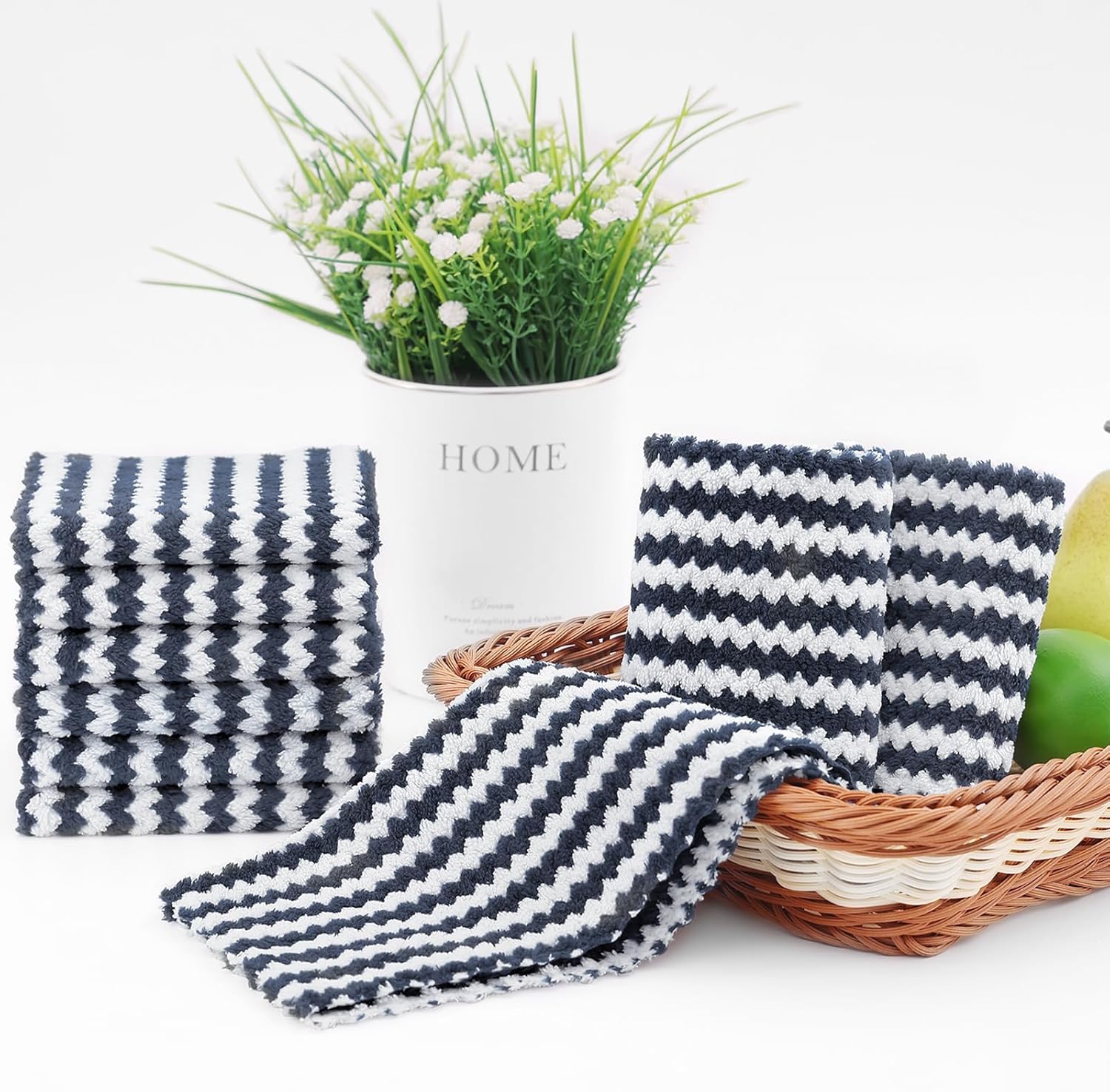 Homaxy 24 Pack Kitchen Dish Cloths, Ultra Soft and Absorbent Dish Towels, Reusable Fast Drying Microfiber Cleaning Cloth, Coral Velvet Wave Design No-lint, 10 x 10 inches, Dark Grey