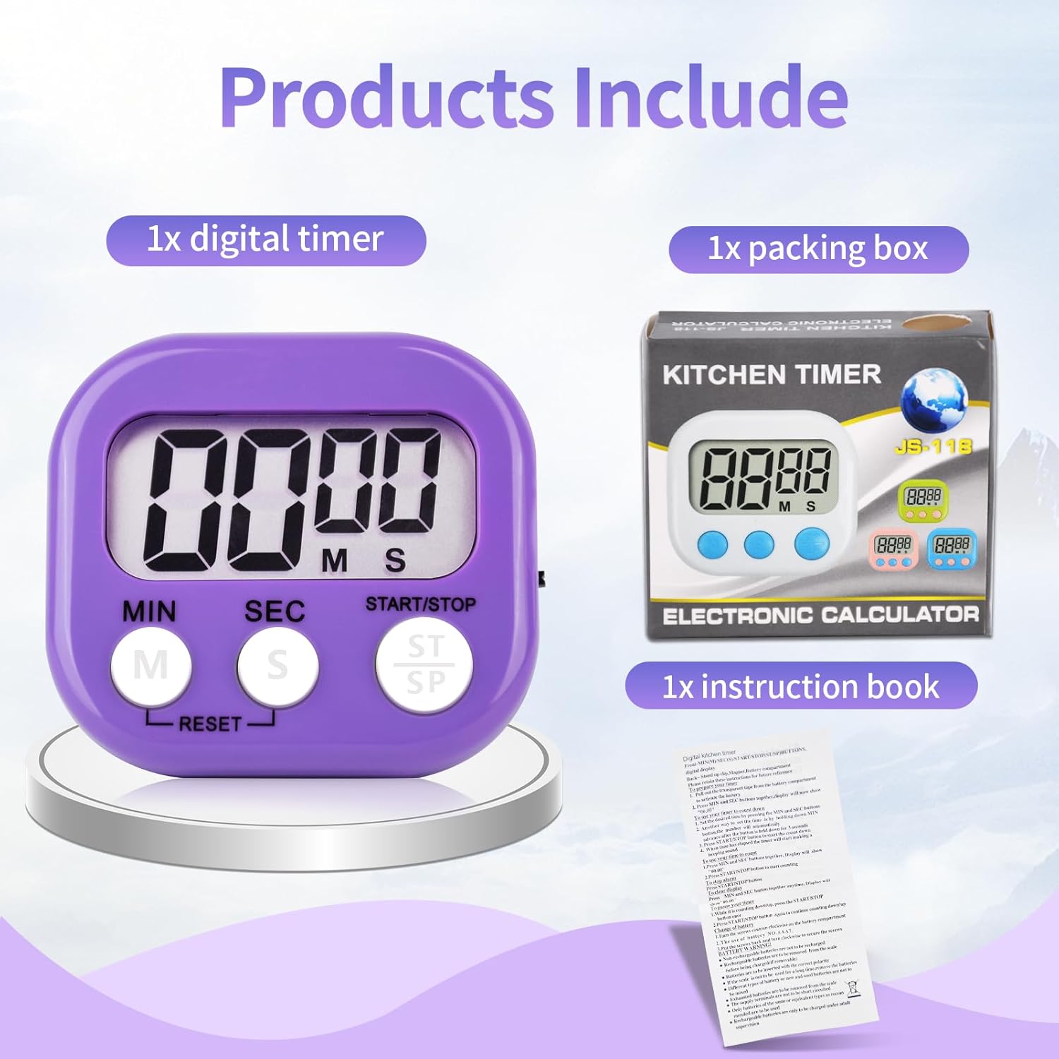 12 Pack Digital Kitchen Timer Magnetic Digital Timer with Big Display Loud Ring Cooking Timers for Kitchen Electronic Timer for Cooking, Bathing, Gym, Break Time, Classroom(12,White,Blue,Purple)