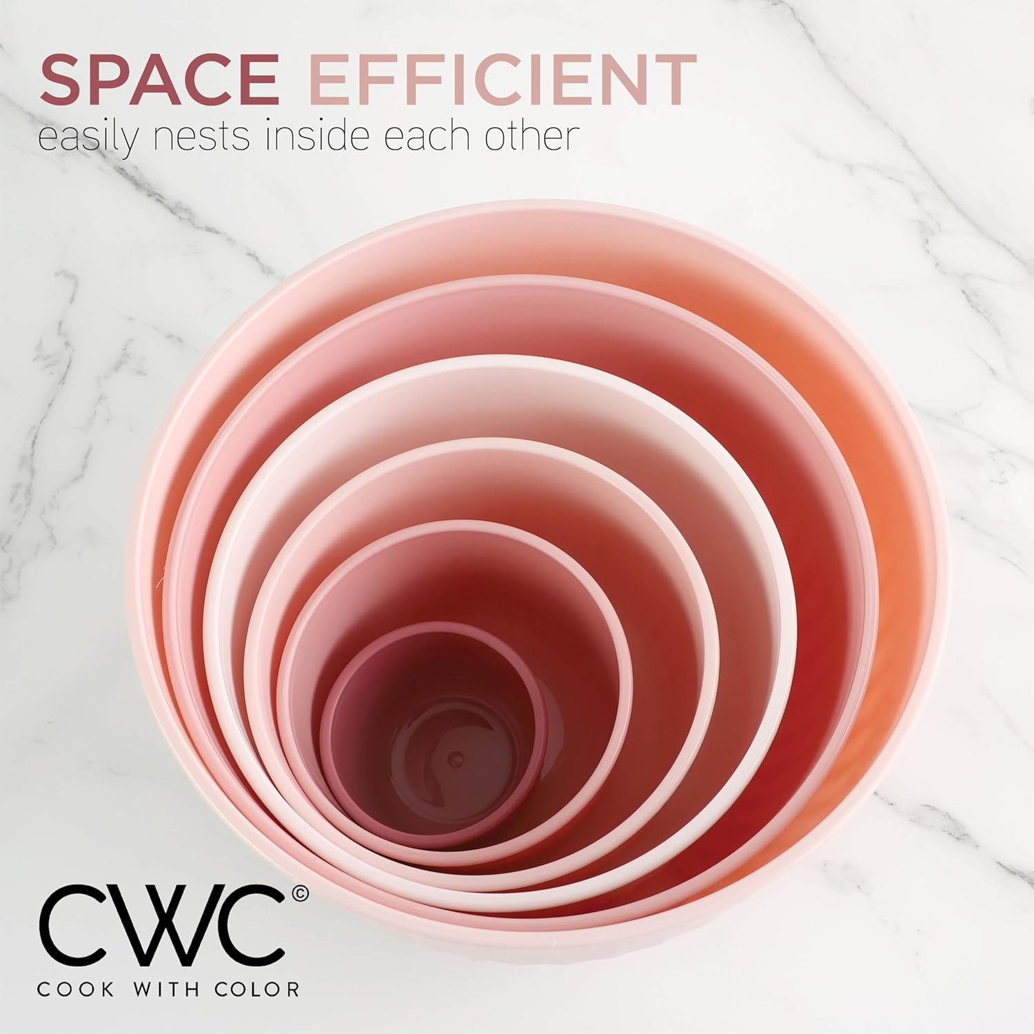 COOK WITH COLOR Prep Bowls with Lids- Wide and Deep Nesting Plastic Small Mixing Bowl Set with Lids, 12 Piece Set - Deep Bowls, Pink