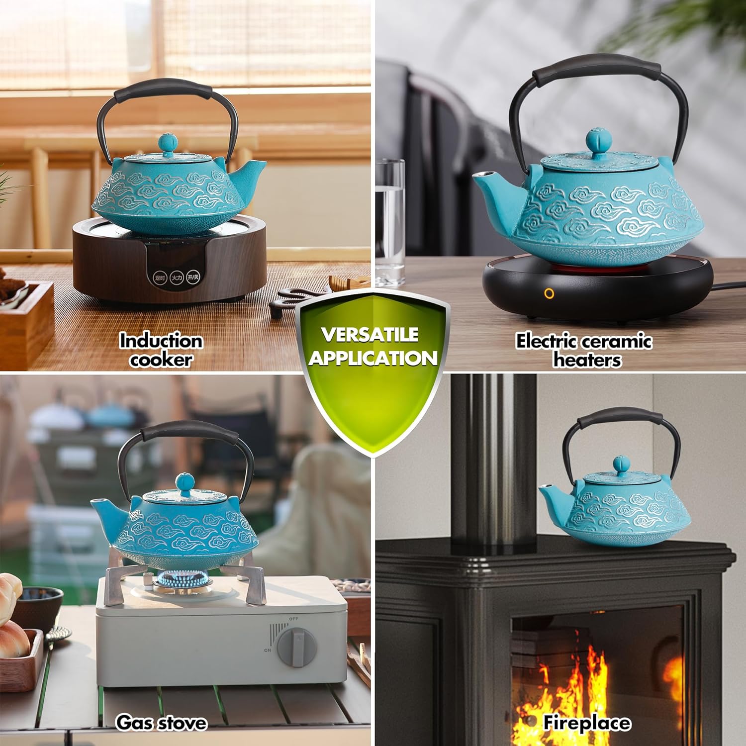 - Classic design: The unique teapot is made of premium iron ore by hand-made craftsmanship. The Auspicious clouds design symbolizes auspicious luck and expresses auspicious, festive, and happy wishes for life. The specific premium Australia iron makes teapot absorb heat better, water heats up quickly, soften water and make water sweeter.