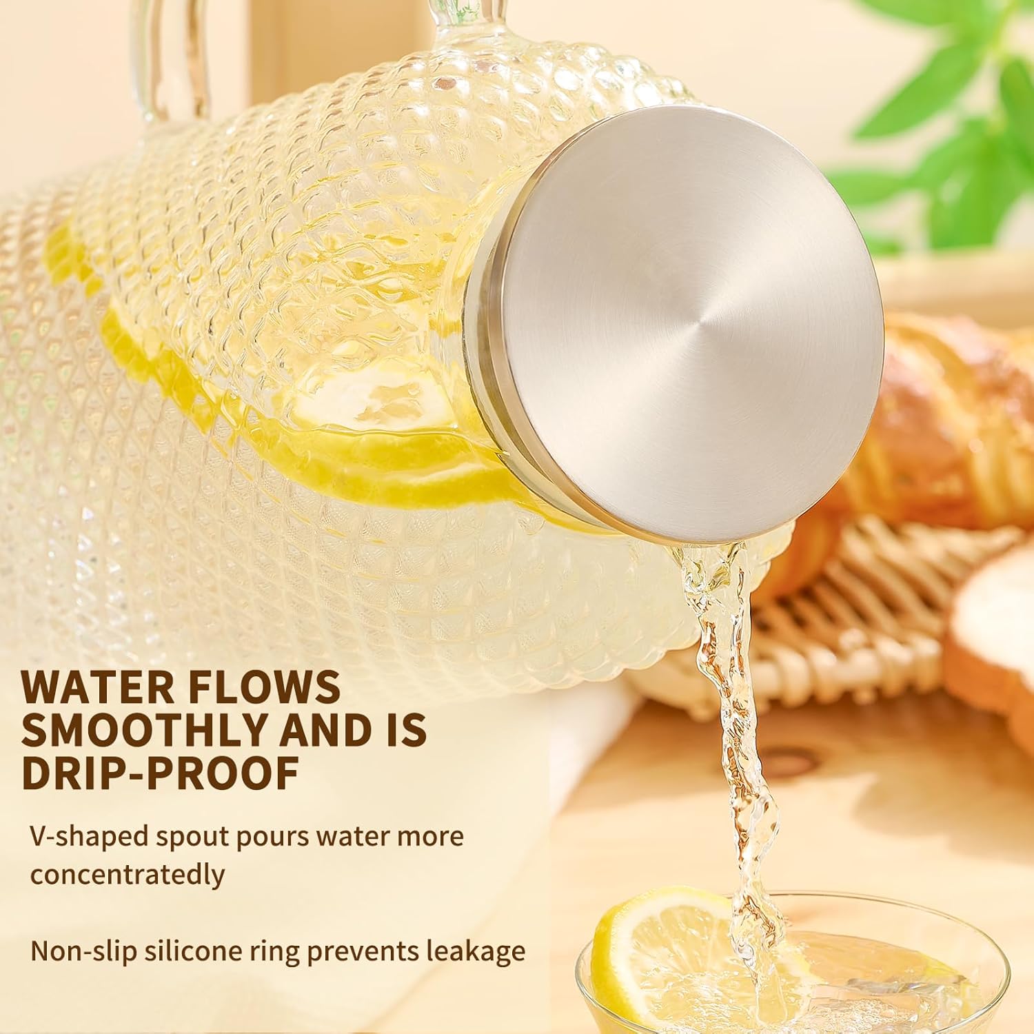 - [Effortless Cleaning]: Our water pitcher features a wide opening for easy cleaning. Made from crystal-clear glass, dirt and residue are easily spotted, ensuring effortless maintenance.