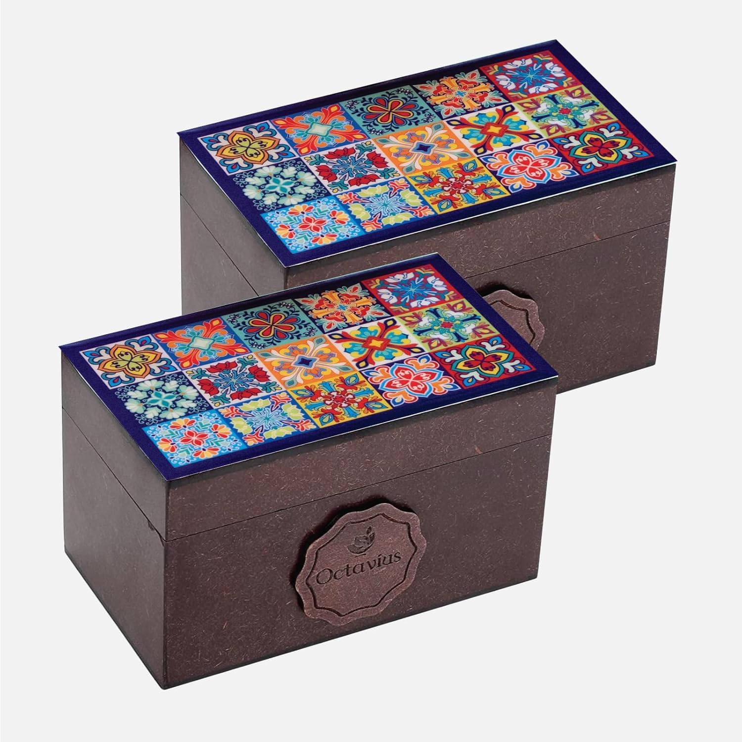 Octavius Assorted Tea Gift Set | 6 Assorted Black & Green Teas | 30 Teabags | Wooden Tea Sampler Pack w/Tile Motif Design | Pack of 2 | Mothers Day Tea Gift Box