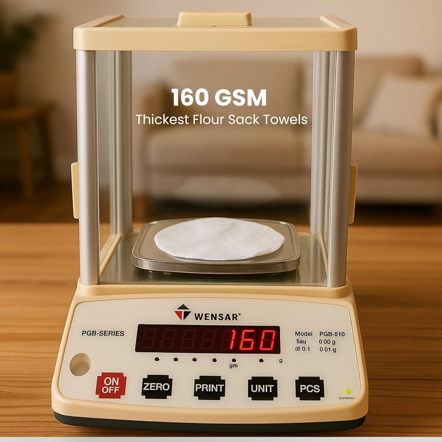 - ✅ Premium 160 GSM Thick Flour Sack Towels – Kitchen-Grade Absorbency Say goodbye to flimsy towels! LITO's ultra-dense 160 GSM 100% ring-spun cotton fabric with a thread count of 130, flour sack towels deliver superior thickness and plush softness—perfect for kitchen drying, wiping, and heavy-duty use.