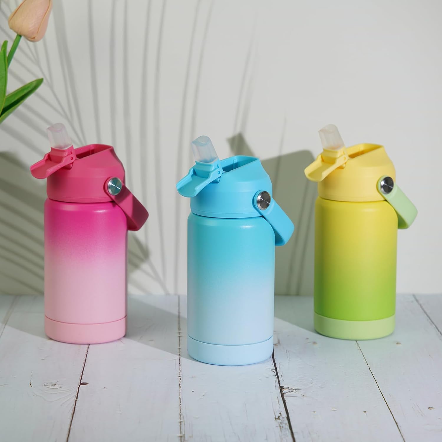 BJPKPK Insulated Water Bottle with Straw Lid, 12oz Thermos Water Bottles, Flex Handle & Non-slip Boot, BPA Free Leak Proof Stainless Steel Metal Thermos, Tumblers, Cups,Pearl Pink
