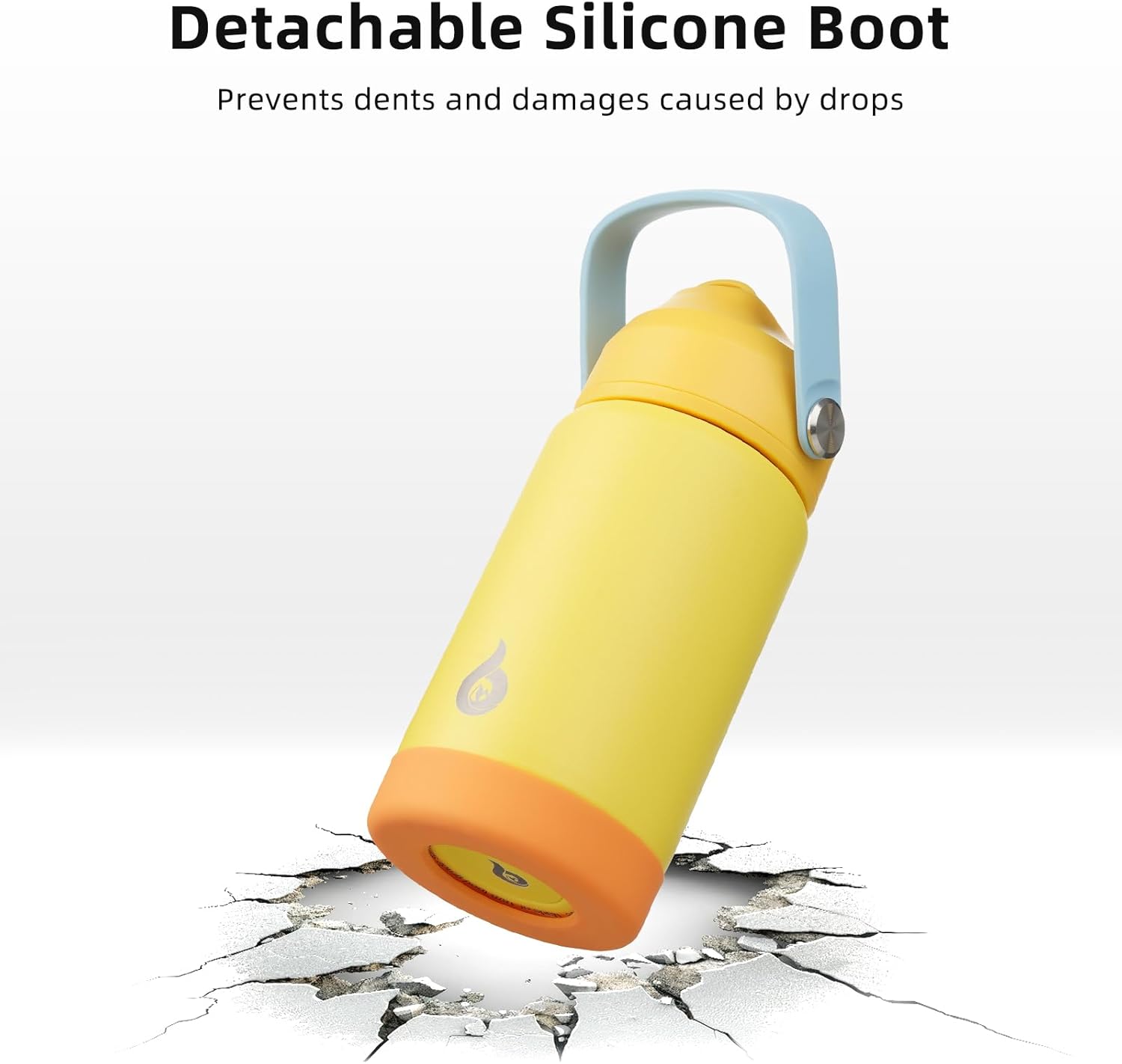 BJPKPK Insulated Water Bottle with Straw Lid, 12oz Thermos Water Bottles with Soft Nozzle, Flex Handle & Non-slip Boot, BPA Free Leak Proof Stainless Steel Metal Thermos, Tumblers, Cups,Yellow