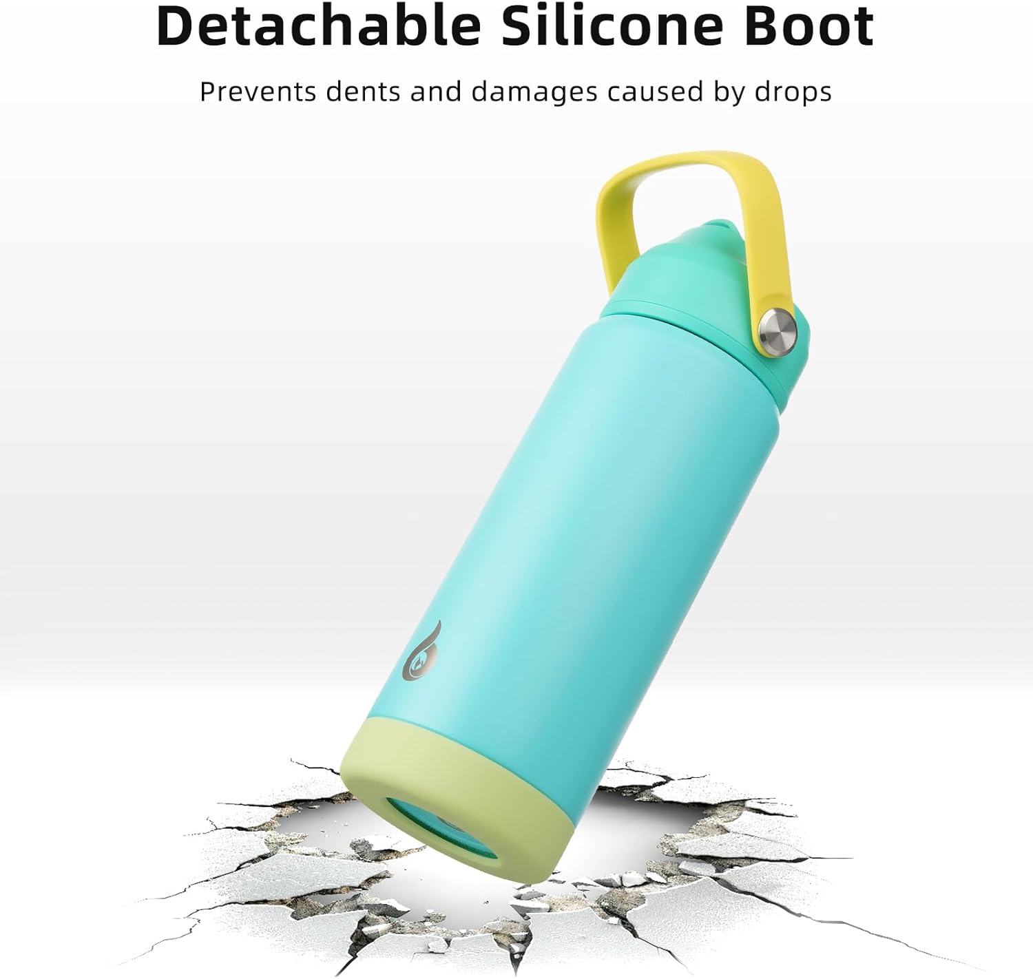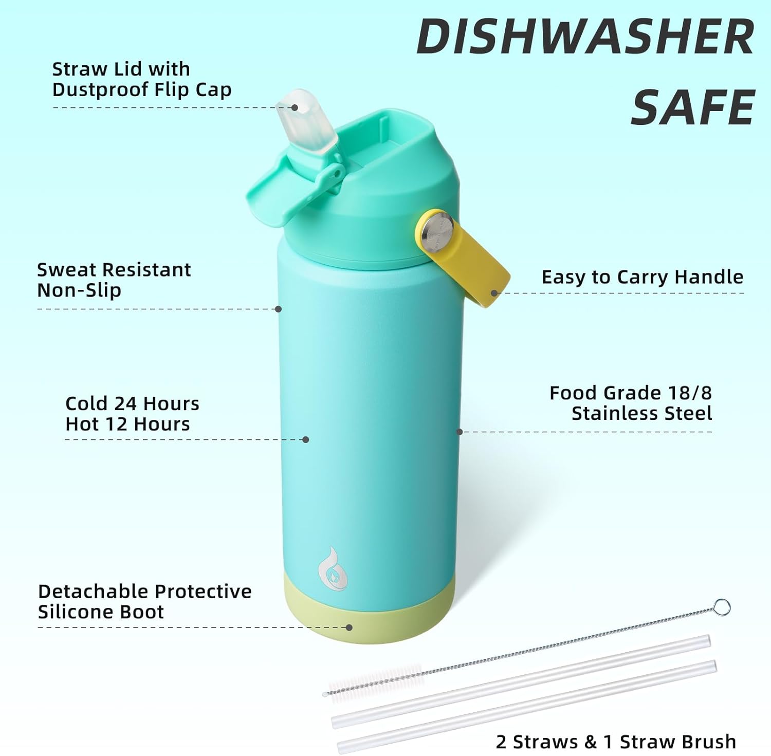- NON-SLIP PROTECTIVE BOOT & DISHWASHER SAFE: This stainless steel water bottle comes with a detachable silicone boot to protect the bottom from bump damage. The wide mouth design of our water cup allows for easy filling, pouring, and cleaning. With 2 straws and 1 straw brush, you can easily clean the nozzle and straw with straw brush. It is also dishwasher safe, saving you time and effort in maintaining its cleanliness and hygiene