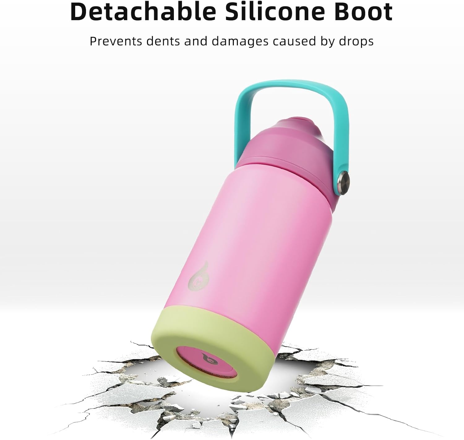 - NON-SLIP PROTECTIVE BOOT & DISHWASHER SAFE: This stainless steel water bottle comes with a detachable silicone boot to protect the bottom from bump damage. The wide mouth design of our water cup allows for easy filling, pouring, and cleaning. With 2 straws and 1 straw brush, you can easily clean the nozzle and straw with straw brush. It is also dishwasher safe, saving you time and effort in maintaining its cleanliness and hygiene