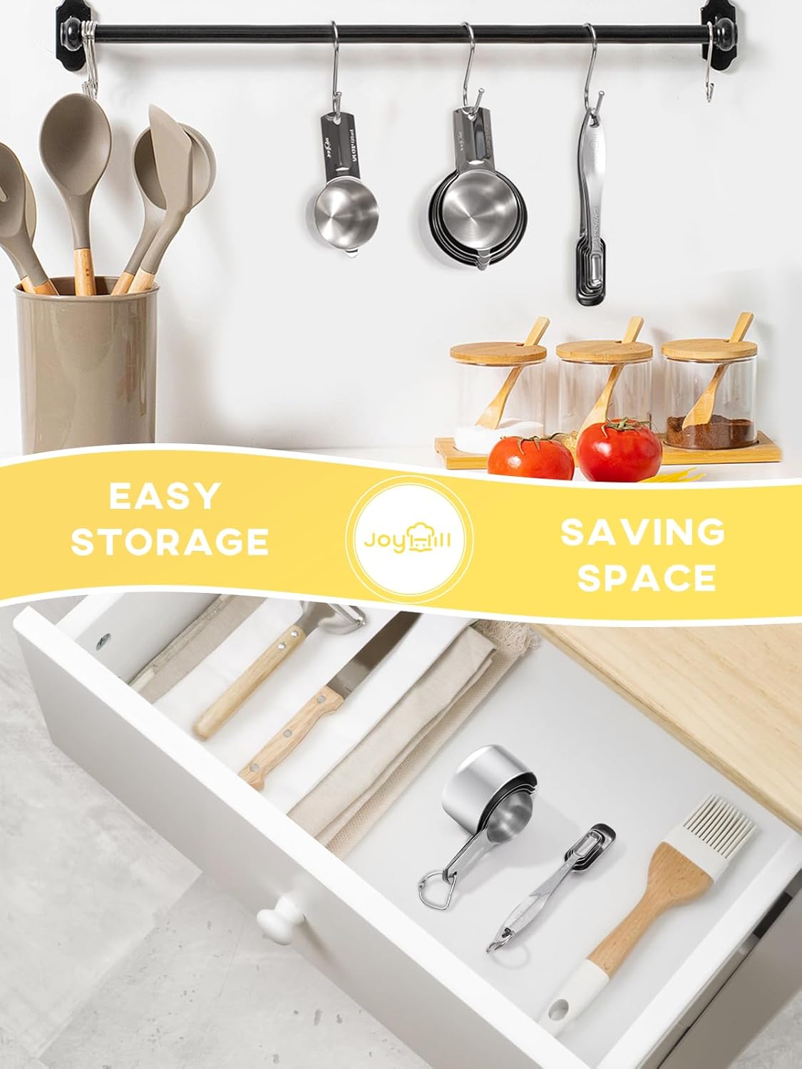 - Dishwasher Safe: Joyhill metal measuring cups and spoons are dishwasher safe for easy cleanup