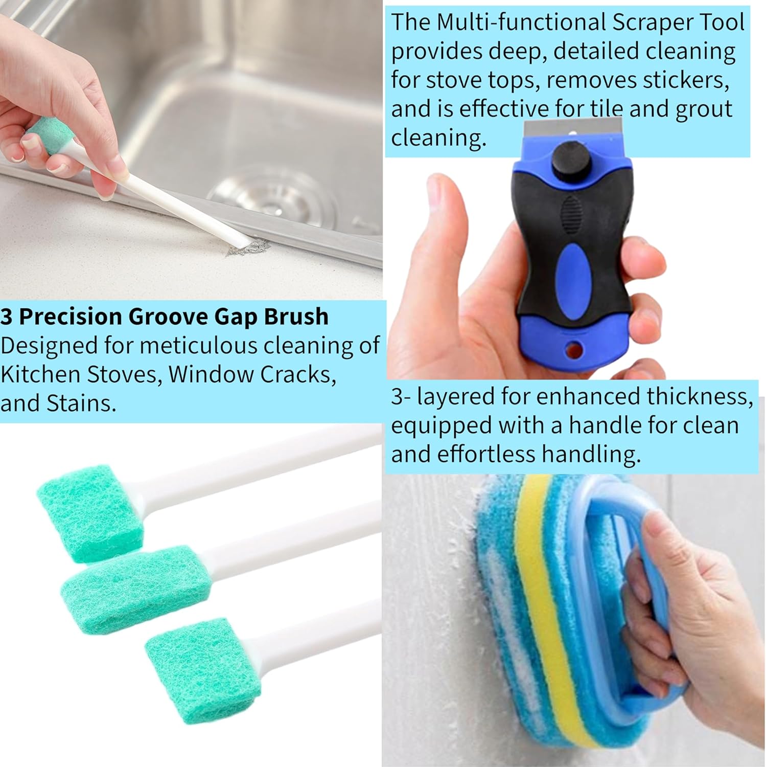 - Non-Scratch Sponges Included: In addition to brushes, this set also includes non-scratch sponges for cleaning delicate surfaces. These damp clean duster sponges are made with a special material that has strong water absorption properties. They are also washable, allowing you to reuse them multiple times, making them a cost-effective cleaning solution.