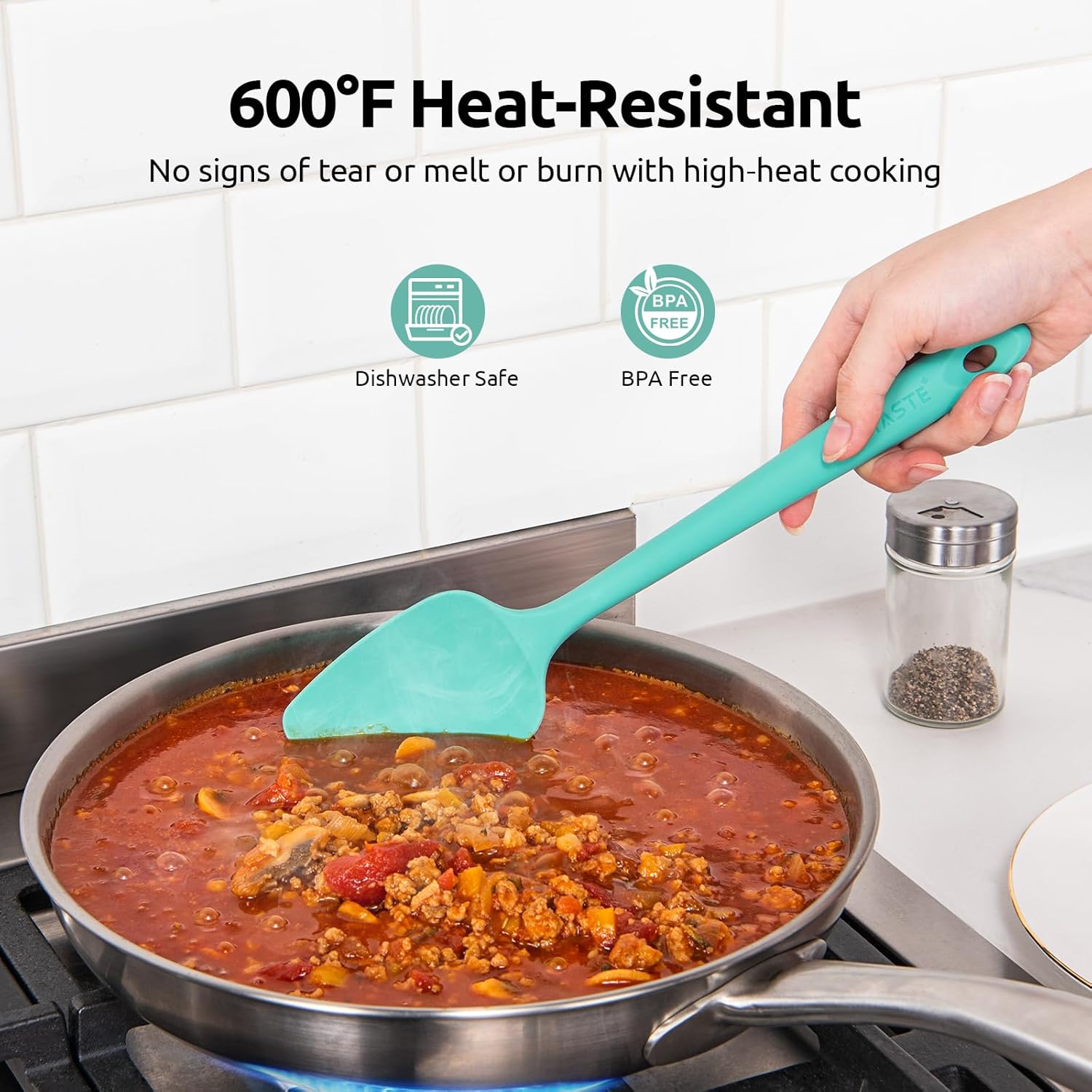 - [600°F high temperature resistant] U-Taste uses superior material - the same material as baby nipple, which is Food Grade and can tolerate high temperatures up to 600°F. You can use this nonstick silicone spatula in a hot pan without worrying about melted plastic in your dinner. It also works well with high temp sugars, chocolates or sauces. A must for newer cooks who might tend to leave utensils in a nonstick pot while cooking.
